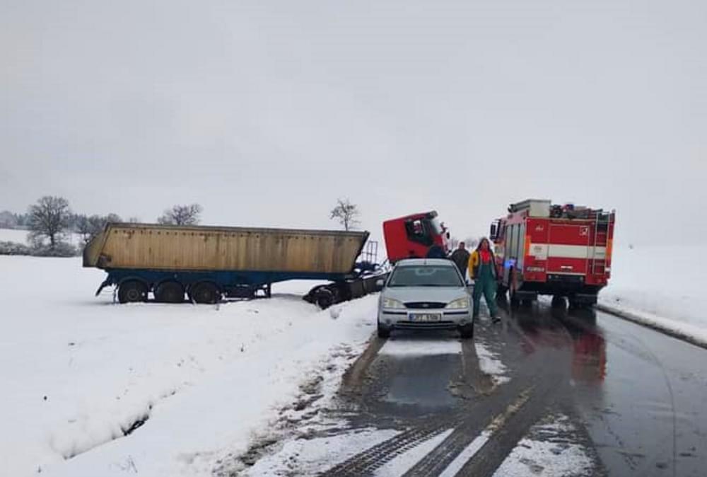 "Řidič narozený v roce 1964 jel od Březiny na Osek, dostal smyk a utrhl se mu návěs, který skončil v poli. Dechová zkouška na alkohol u řidiče byla negativní," popsala tisková mluvčí policie.