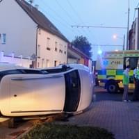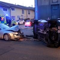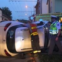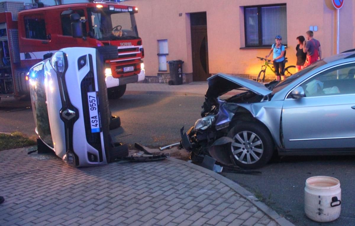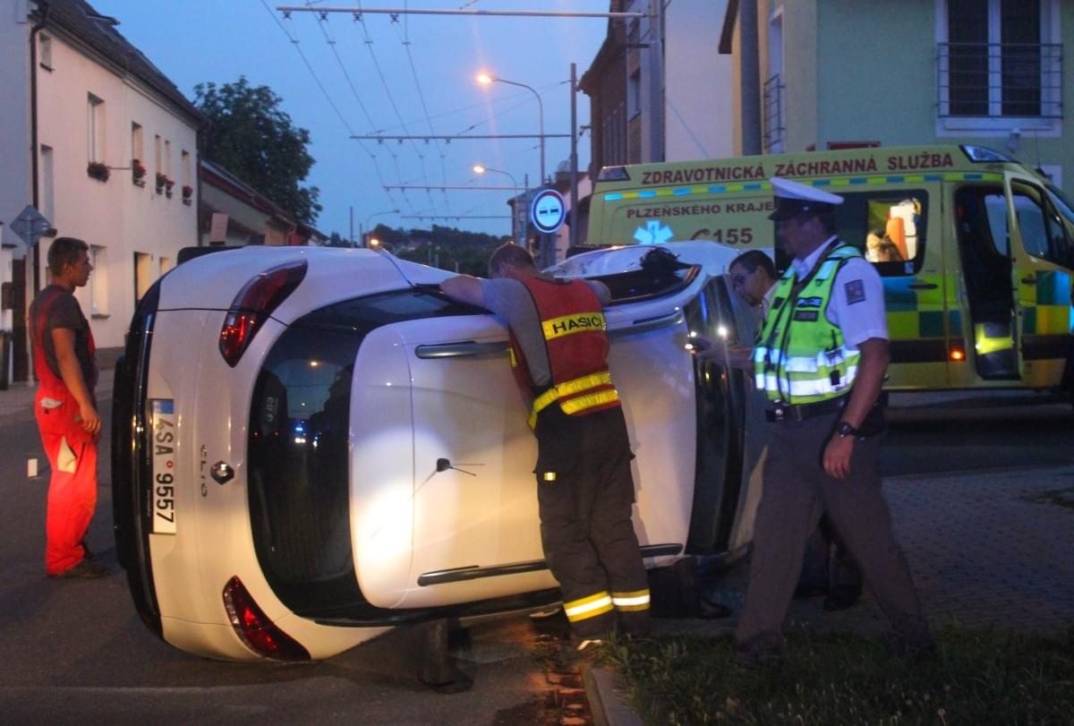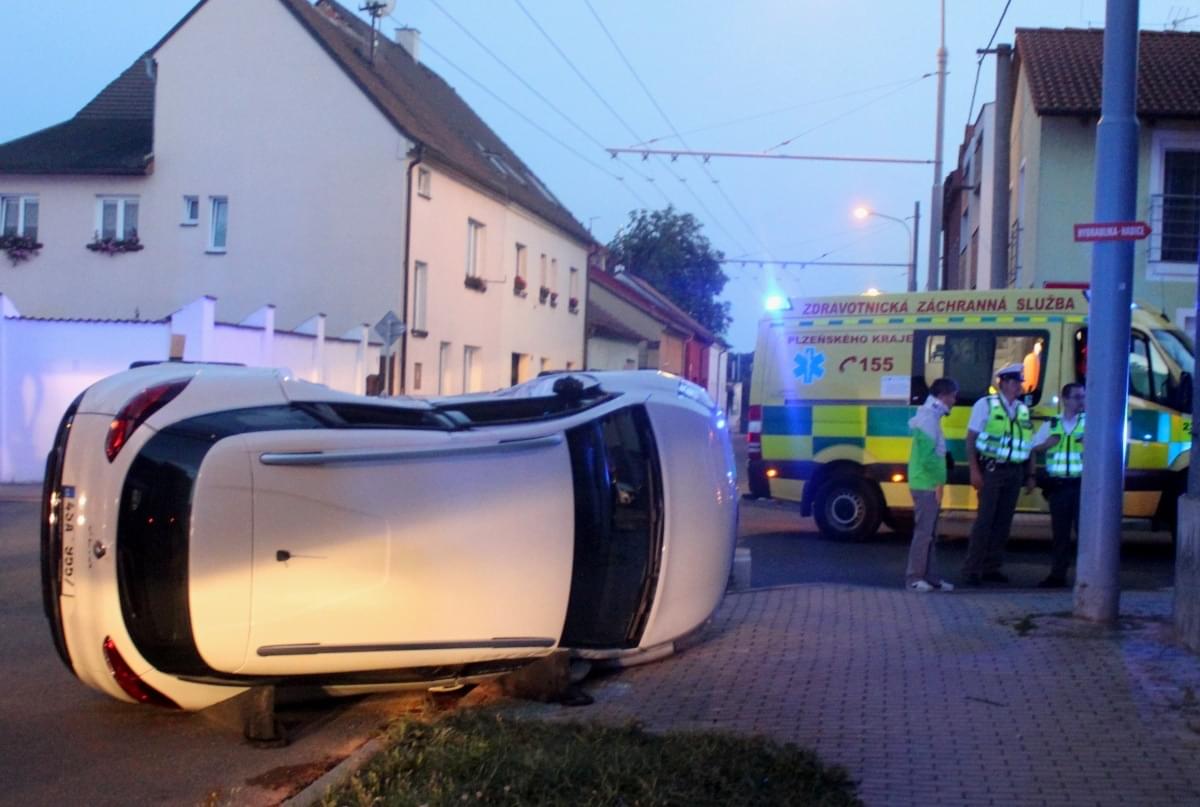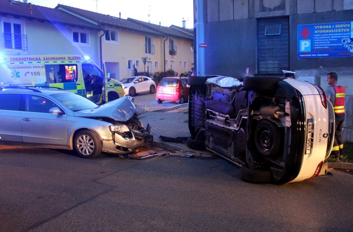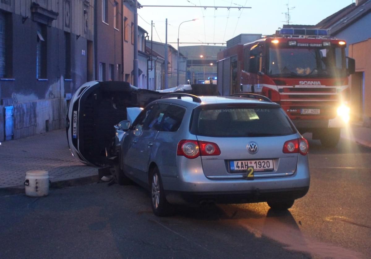 Dnes po osmé hodině večer došlo v Průmyslové ulici v Plzni k dopravní nehodě, při které se střetly dva osobní vozy a náraz byl natolik silný, že jeden z vozů převrátil na střechu.