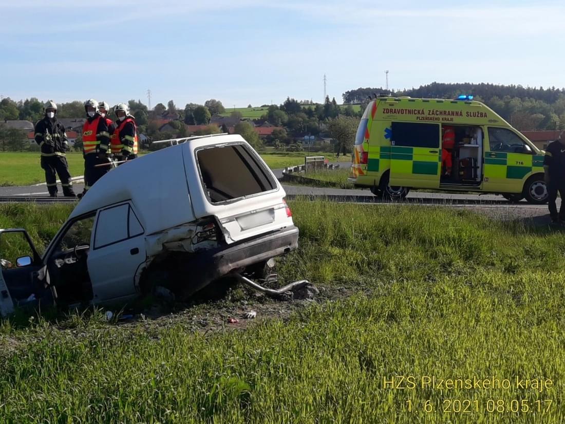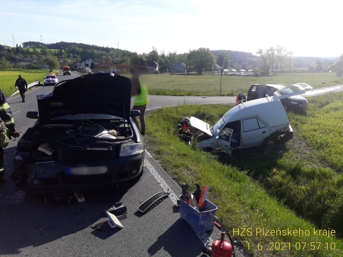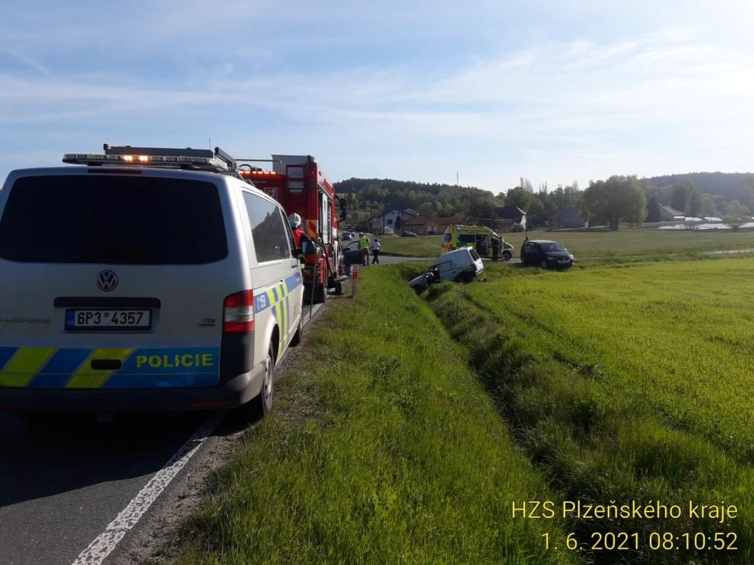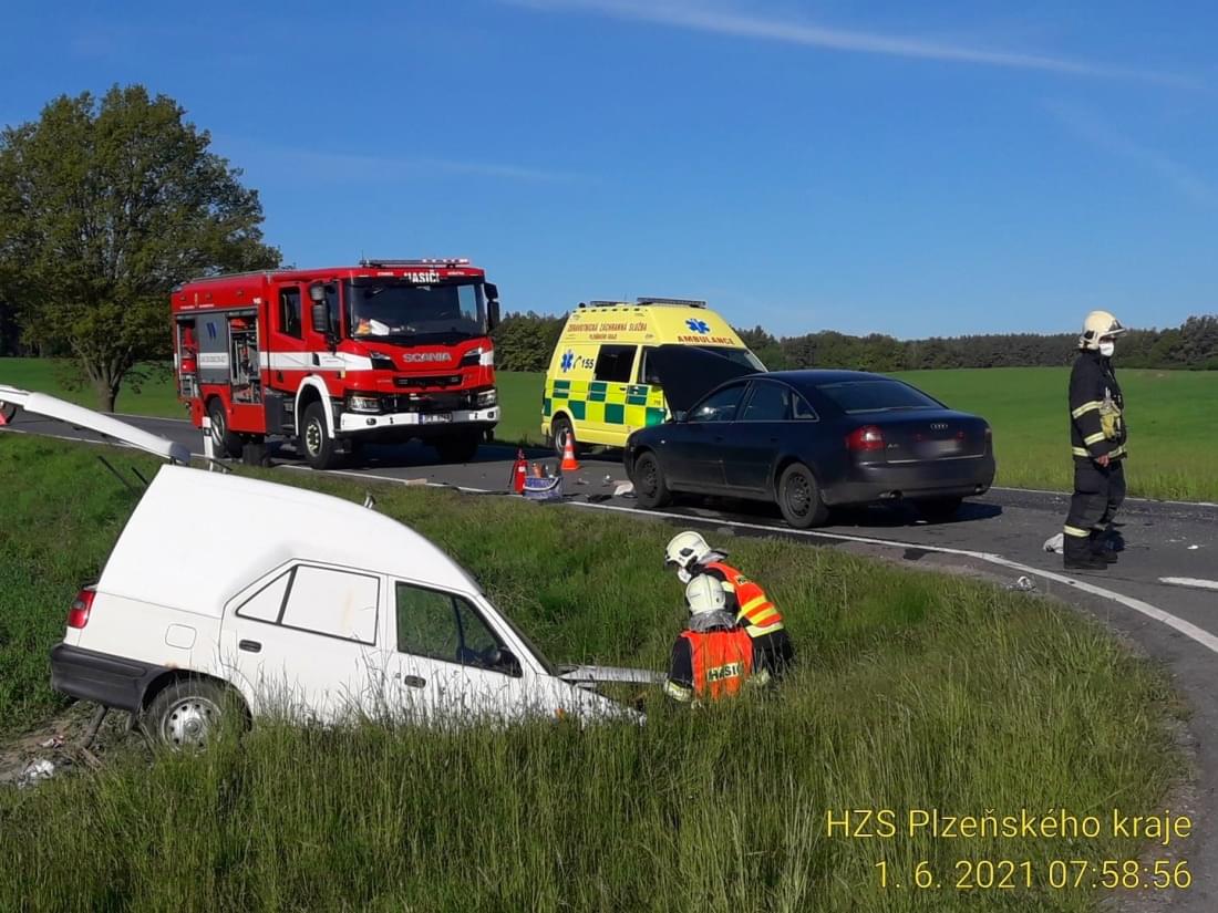 Dnes kolem půl osmé ráno se na silnici mezi Nekmíří a Tlucnou střetly dva osobní vozy. "Ve směru od Tlucné na Nekmíř jel řidič vozu Audi A6 narozený v roce 1991, který na křižovatce na Tatinou začal předjíždět vůz Škoda Felicia Pickup, jehož řidič narozený v roce 1969 ale odbočoval vlevo," popsala tisková mluvčí policie okolnosti střetu s tím, že Škoda byla po střetu odražena mimo silnici do příkopu.