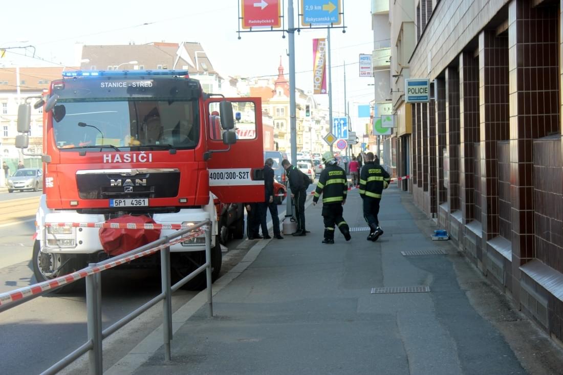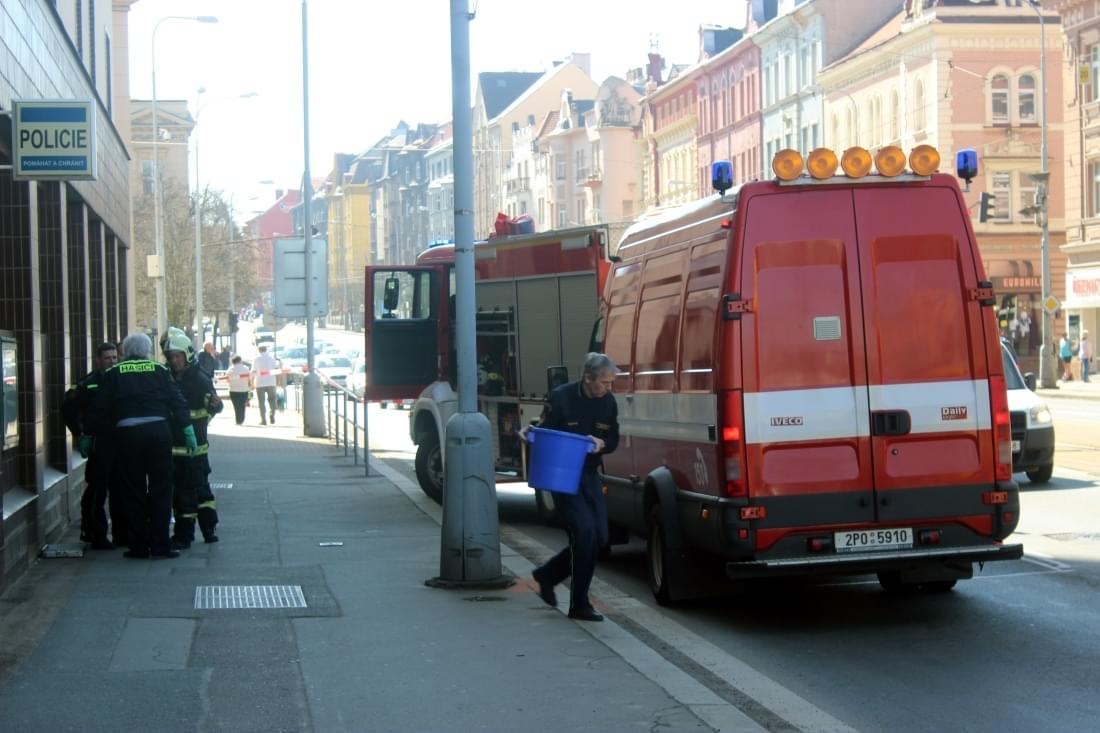 Dnes těsně po poledni vyjížděli hasiči na Klatovskou třídu, kde byl přímo před budovu Policie objeven přibližně pětilitrový kanystr s neznámou chemickou látkou. Tato žíravina již vytékala na chodník a způsobovala zde chemickou reakci. Hasiči uzavřeli chodník a místo zajistili do příjezdu výjezdu Chemické laboratoře HZS Plzeňského kraje z Třemošné u Plzně.