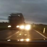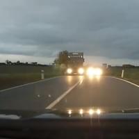 V zatáčce na horizontu, ve které je předjíždění samozřejmě zakázáno, tento řidič při předjíždění kamionu ohrozil protijedoucí vozidlo, jehož řidič, aby zabránil čelnímu střetu, musel strhnout řízení a havaroval proto do silničního příkopu.