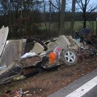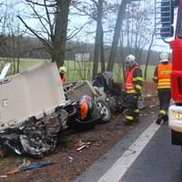 Dnes kolem třetí hodiny odpoledne uzavřela hlavní tah z Plzně na Klatovy vážná dopravní nehoda. Vozidlo Hyundai jedoucí směrem na Plzeň u Dobřan, tzv. Na Vysoké, vyjelo v plné rychlosti ze silnice a narazilo do stromu. Náraz vozidlo doslova rozpáral, takže zcela oddělil střechu od vozu a ve vraku zůstal zaklíněný řidič.