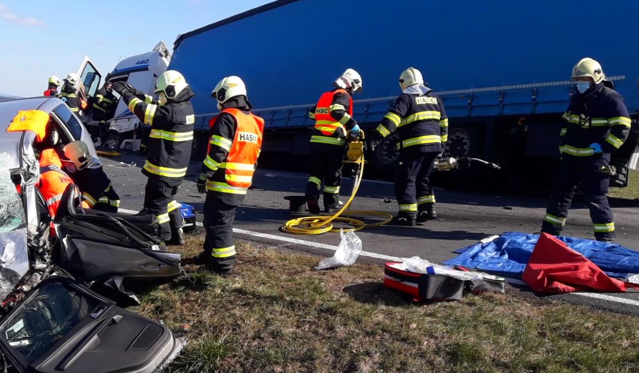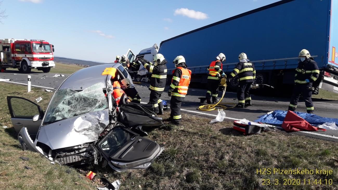 Z místa byl hlášen střet osobního vozu a kamionu, a bohužel také několik zraněných lidí, takže k nehodě vyjeli záchranáři a hasiči ze stanic Tachov, Staňkov a JSDH Bor. Po dojezdu na místo se ukázalo, že kamion i osobní vozidlo po střetu skončily mimo vozovku. Dle mluvčího hasičů bylo nutné řidiče osobního vozu vyprostit pomocí hydraulického vyprošťovacího zařízení. Spolujezdce z osobního auta a řidiče kamionu nebylo třeba vyprošťovat. Všechny zraněné osoby byly poté předány ZZS.