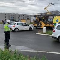 Dnes před osmou hodinou ráno došlo v Kaplířově ulici před budovou Úřadu práce k dopravní nehodě, při které se osobní vůz střetl s autobusem a nárazem byl odmrštěn na tramvajový pás.