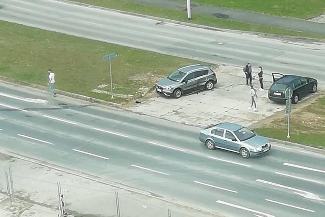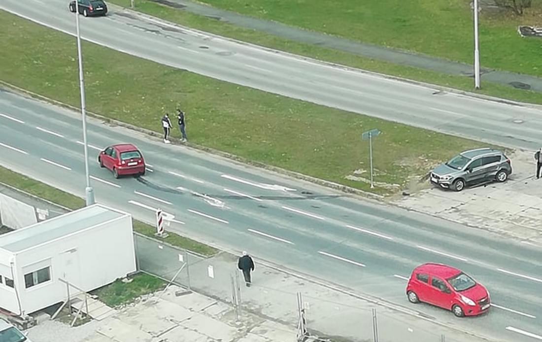 Dnes před polednem došlo v Plzni v ulici Na Chmelnicích k dopravní nehodě. Podle informací z místa se zde starší řidič s vozem Suzuki jedoucí v pravém pruhu směrem na Vinice rozhodl otočit a odbočil vlevo na technickou komunikaci ke stavbě. Tím ale vjel do cesty mladému řidiči vozu Citroen v levém pruhu, který sice strhl řízení na travnatý pás, ale střetu již zabránit nedokázal a narazil do levého boku Suzuki.