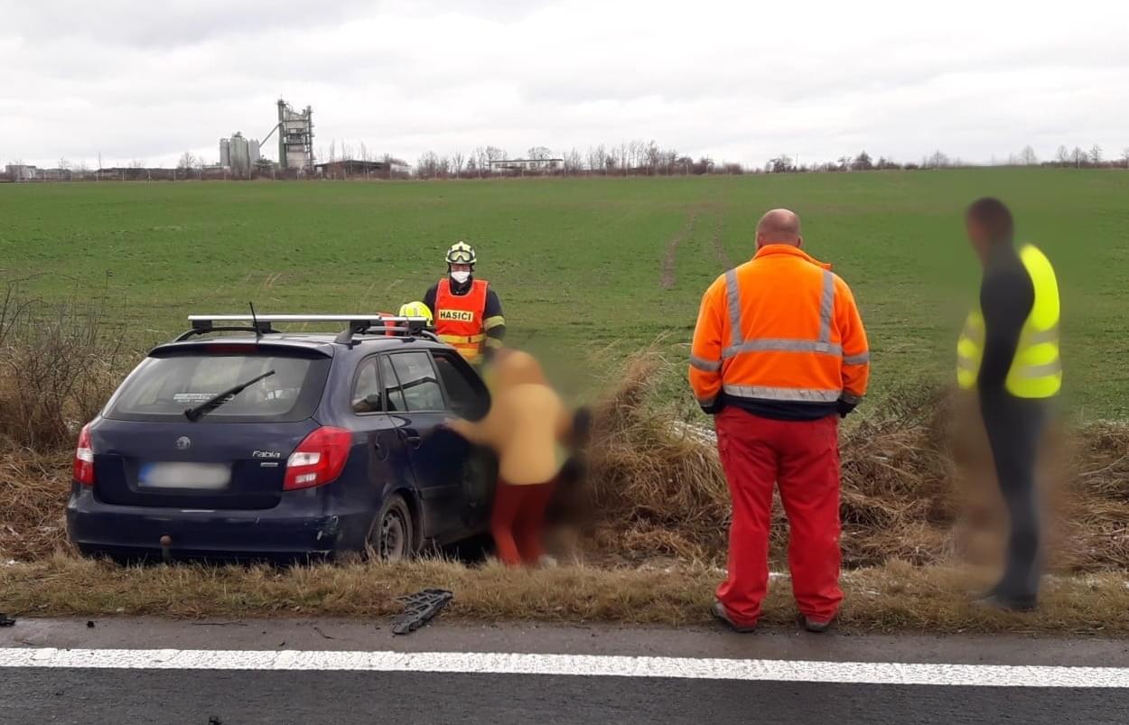 Řidiče Škody záchranáři po ošetření na místě transportovali do nemocnice, dle všeho by ale jeho zranění nemělo být vážné.
