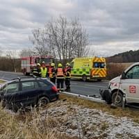 Dnes odpoledne kolem půl jedné došlo mezi hlavním tahem z Plzně na Klatovy a Robčicemi ke střetu osobního auta a dodávky. Osobní vůz po nehodě skončil částečně mimo vozovku. Vzhledem k tomu, že došlo ke zranění řidiče, na místo vyjely všechny záchranné složky.