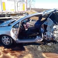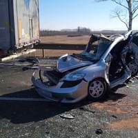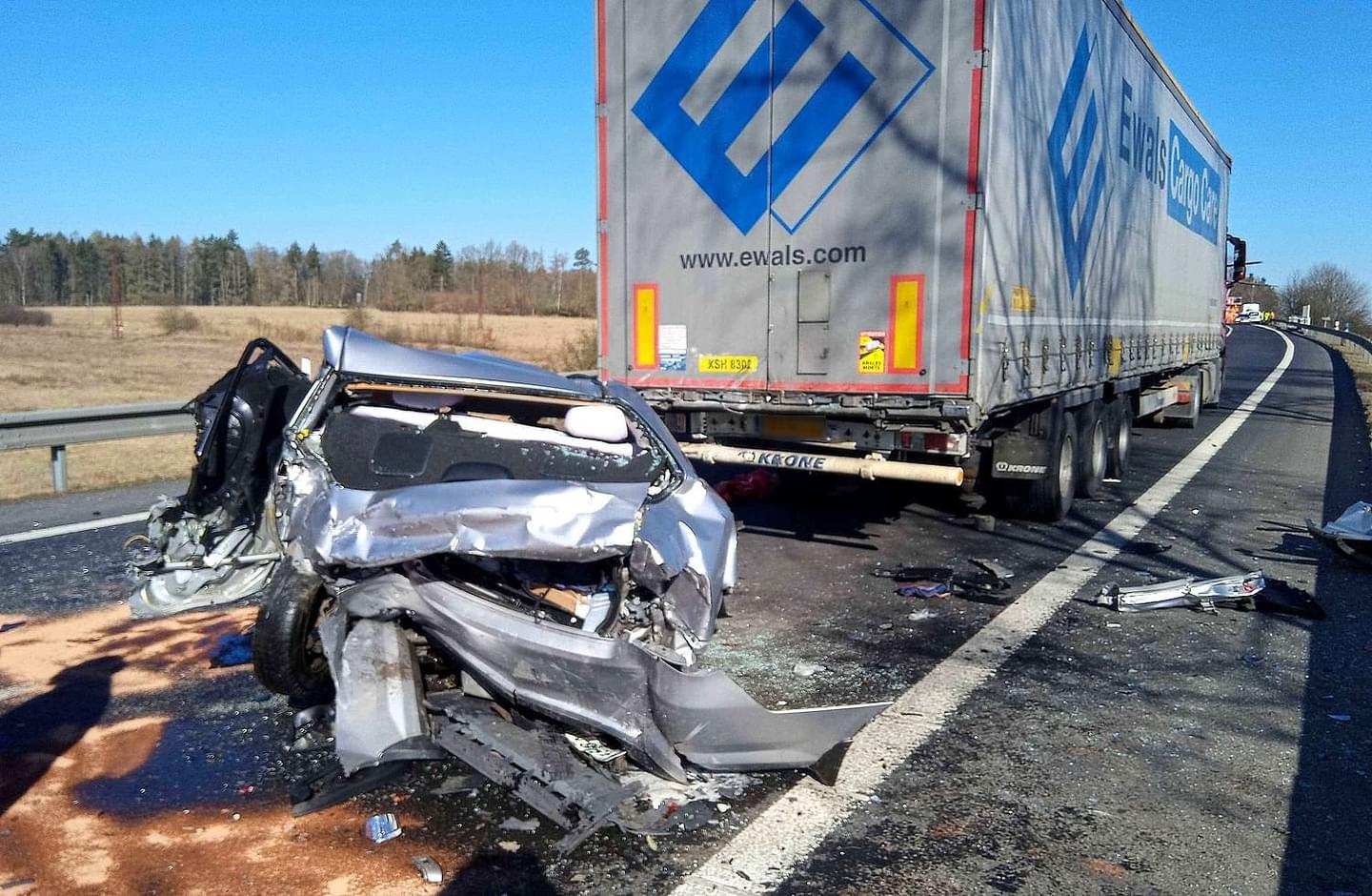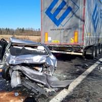 Včera po deváté hodině došlo na silnici 21 u Františkových Lázní k vážné dopravní nehodě, při které dodávka doslova zarazila osobní vůz pod návěs kamionu.