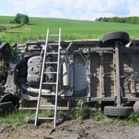 Včera před půl čtvrtou odpoledne došlo na silnici I. třídy č. 26 mezi Horšovským Týnem a Semošicemi k hromadné dopravní nehodě, při které se střetly dva osobní vozy, dodávka a nákladní vůz přepravující nebezpečný náklad.