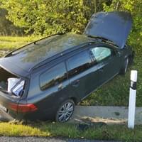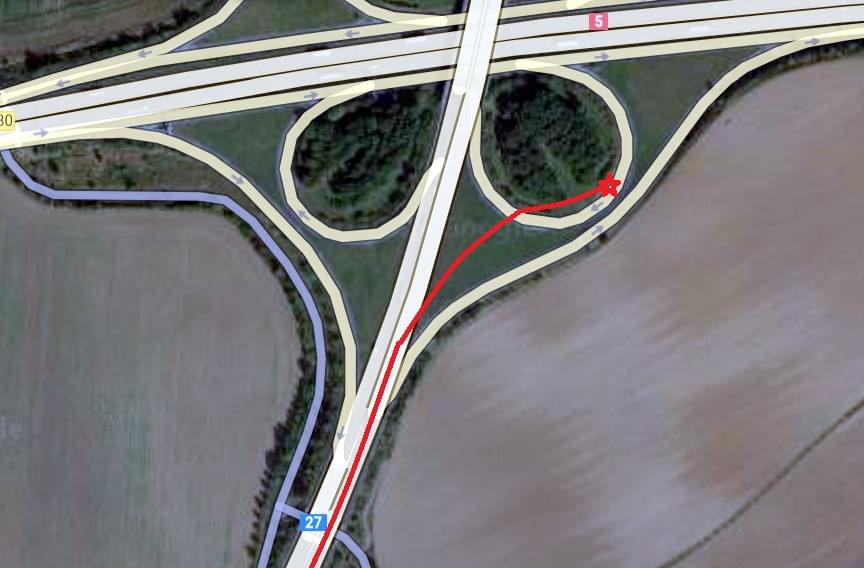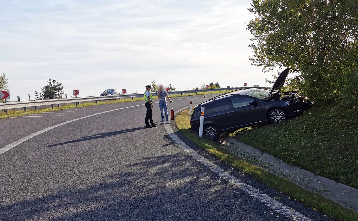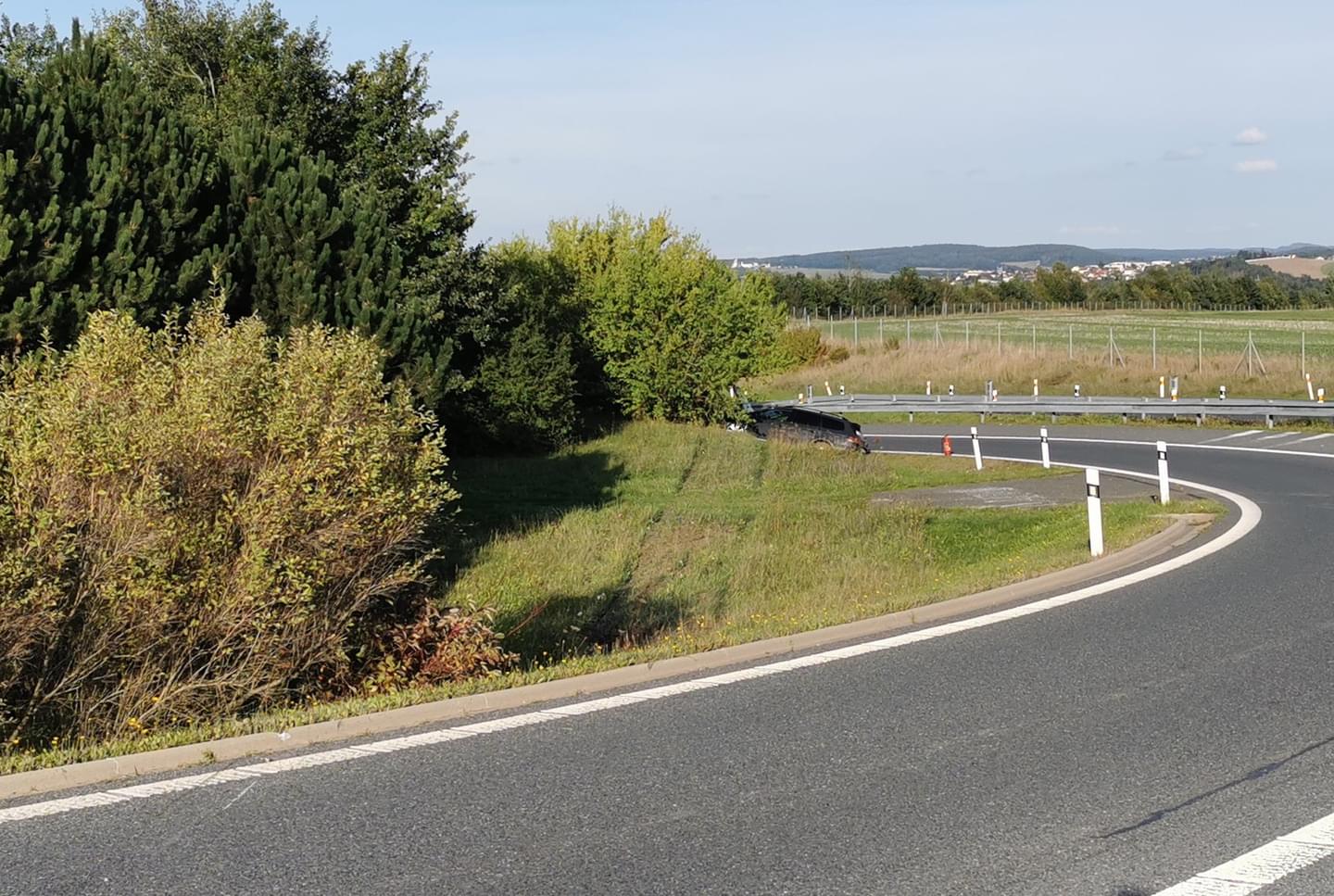 Dnes kolem půl páté odpoledne došlo na křížení dálnice D5 a silnice 27 vedoucí z Klatov do Plzně ke kuriózní dopravní nehodě, při které osobní vůz Volkswagen jedoucí po silnici 27 od Klatov na Plzeň vyletěl z vozovky, přejel trávník široký devadesát metrů, poté protisměrný sjezd z dálnice, kde v tu chvíli naštěstí nic nejelo, pak ještě další trávník široký třicet metrů a nakonec narazil do stromu.