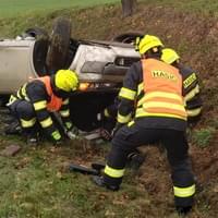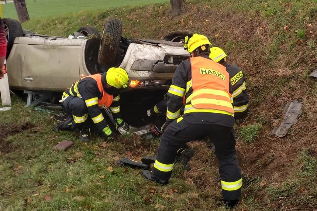 Ve vozidle cestoval mladý muž s dívkou a oba se z převráceného vozu dostali ještě před příjezdem záchranných složek.