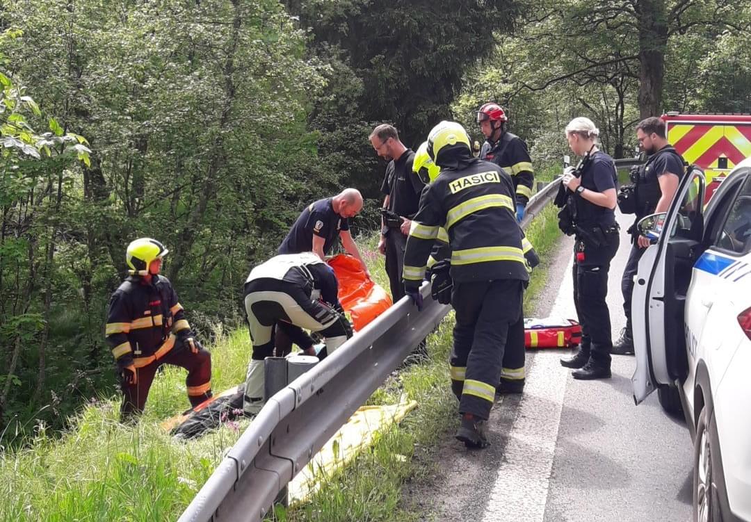 Dnes v půl jedenácté dopoledne došlo na silnici I/27 vedoucí ze Železné rudy na Alžbětín k dopravní nehodě, během které se po vyjetí ze silnice a následném pádu zranil motocyklista.