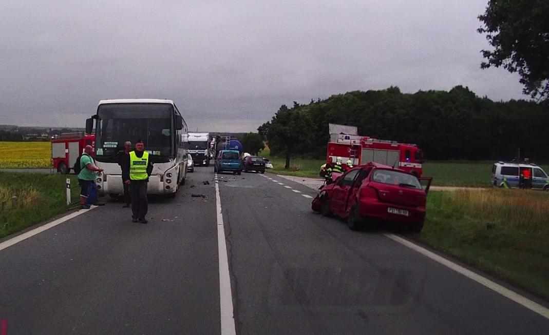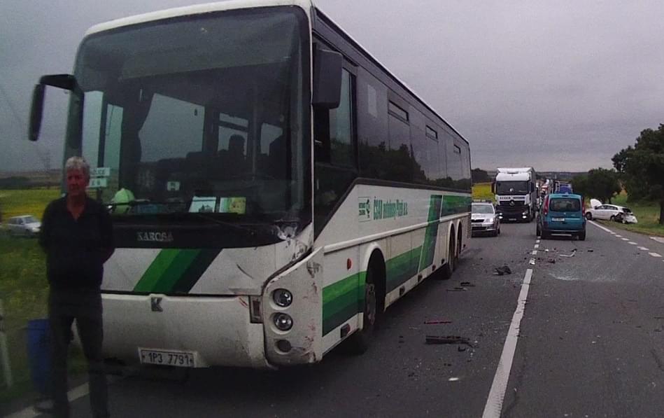 Dnes před druhou hodinou odpoledne došlo na silnici 26 mezi Holýšovem a Stodem k dopravní nehodě tří osobních vozů s autobusem, ve kterém cestovalo 15 osob. "Řidič osobního vozu, odbočující vlevo na Střelice, dával přednost protijedoucímu vozu. Řidič jedoucí za ním zastavil, ale třetí vozidlo v řadě nikoli a do stojících vozidel narazilo. Následkem nárazu se osobní vozy střetly s protijedoucím autobusem," uvedla k nehodě tisková mluvčí policie.