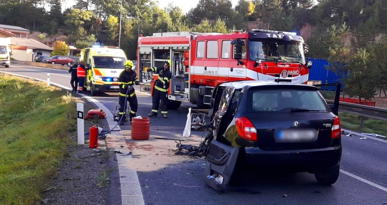 Z místa bylo hlášeno zranění a zaklínění jednoho z řidičů, takže k nehodě vyjely všechny záchranné složky.