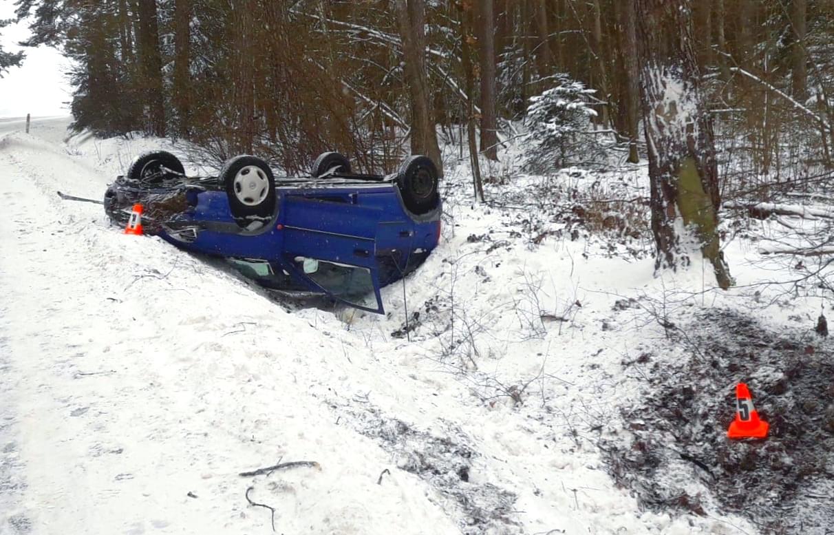 "Jednadvacetiletá řidička vozu značky Opel Corsa jela od Klenčí na Draženov, nepřizpůsobila rychlost jízdy a při průjezdu levotočivé zatáčky dostala na zasněženém povrchu komunikace s vozidlem smyk. Vyjela za pravý okraj komunikace do pravého silničního příkopu, kde se vozidlo převrátilo na střechu," popsala tisková mluvčí policie s tím, že řidička utrpěla lehké zranění a z místa dopravní nehody byla transportována do nemocnice v Domažlicích.