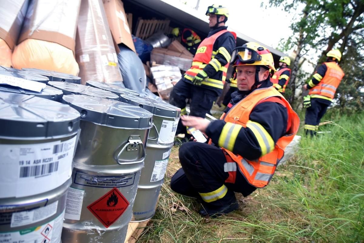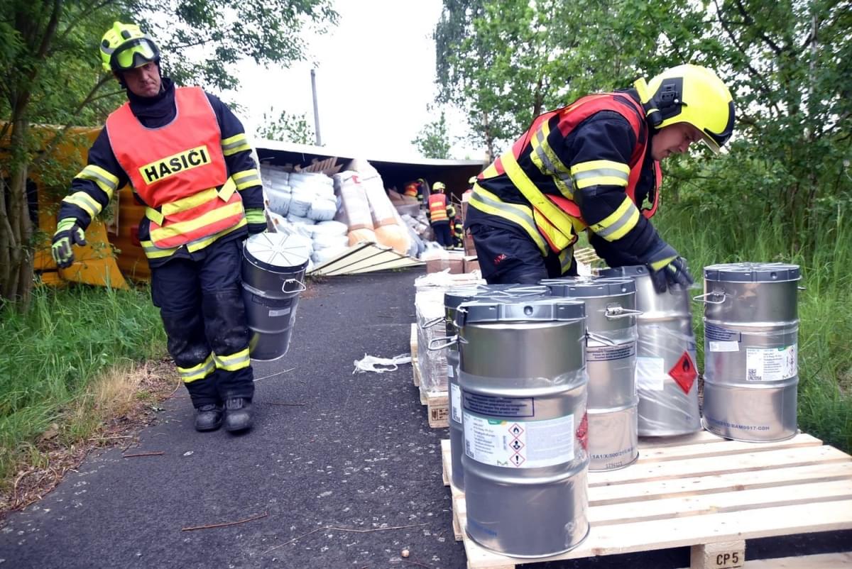Hasiči mezitím zajistili místo nehody, provedli protipožární opatření a začali likvidovat naftu unikající do půdy. K úniku různých nebezpečných hořlavých a žíravých látek, které kamion v režimu ADR převážel naštěstí nedošlo. "Situaci na místě kontrolují společně s hasiči zástupci odboru životního prostředí a Povodí Ohře. S ohledem na charakter převážených látek budou hasiči s maximální opatrností překládat náklad do náhradního vozidla tak, aby ani při této činnosti nedošlo k úniku nebezpečných látek," uvedli hasiči.