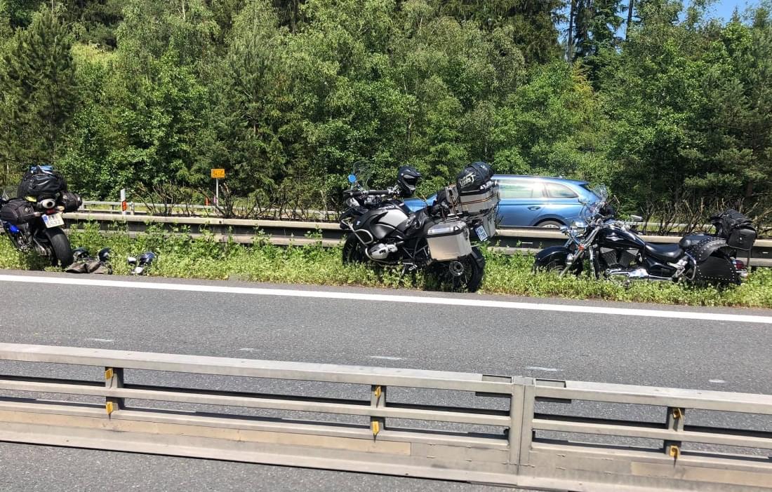 V sobotu kolem jedenácté hodiny dopoledne došlo na dálnici D5, ve směru z Plzně na Prahu, k dopravní nehodě. Na 54 kilometru vjelo motorkářům do cesty osobní vozidlo a dva motocyklisté havarovali. Osobní vozidlo z místa odjelo, samozřejmě ale není jasné, zda jeho řidič nehodu, ke které došlo za ním, vůbec zaznamenal. Na místo okamžitě vyrazily všechny záchranné složky. Záchranáři z místa transportovali dva muže, jednoho narozeného v roce 1992 do Fakultní nemocnice na Lochotíně s úrazem dolní končetiny a druhého, narozeného v roce 1963 do Rokycanské nemocnice.