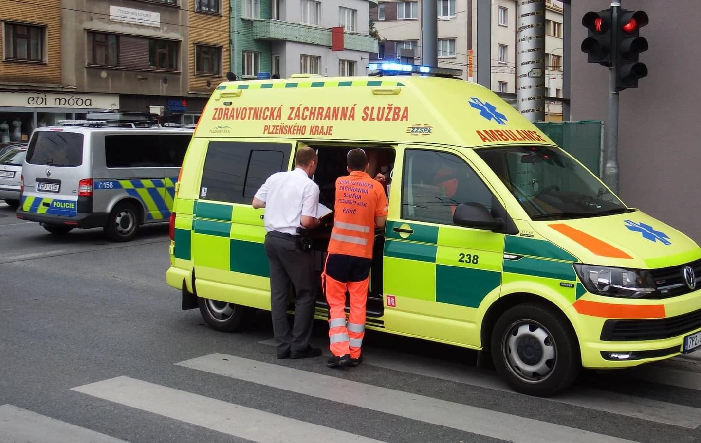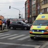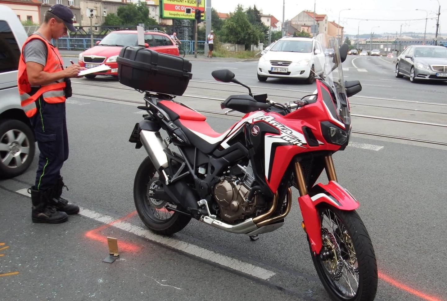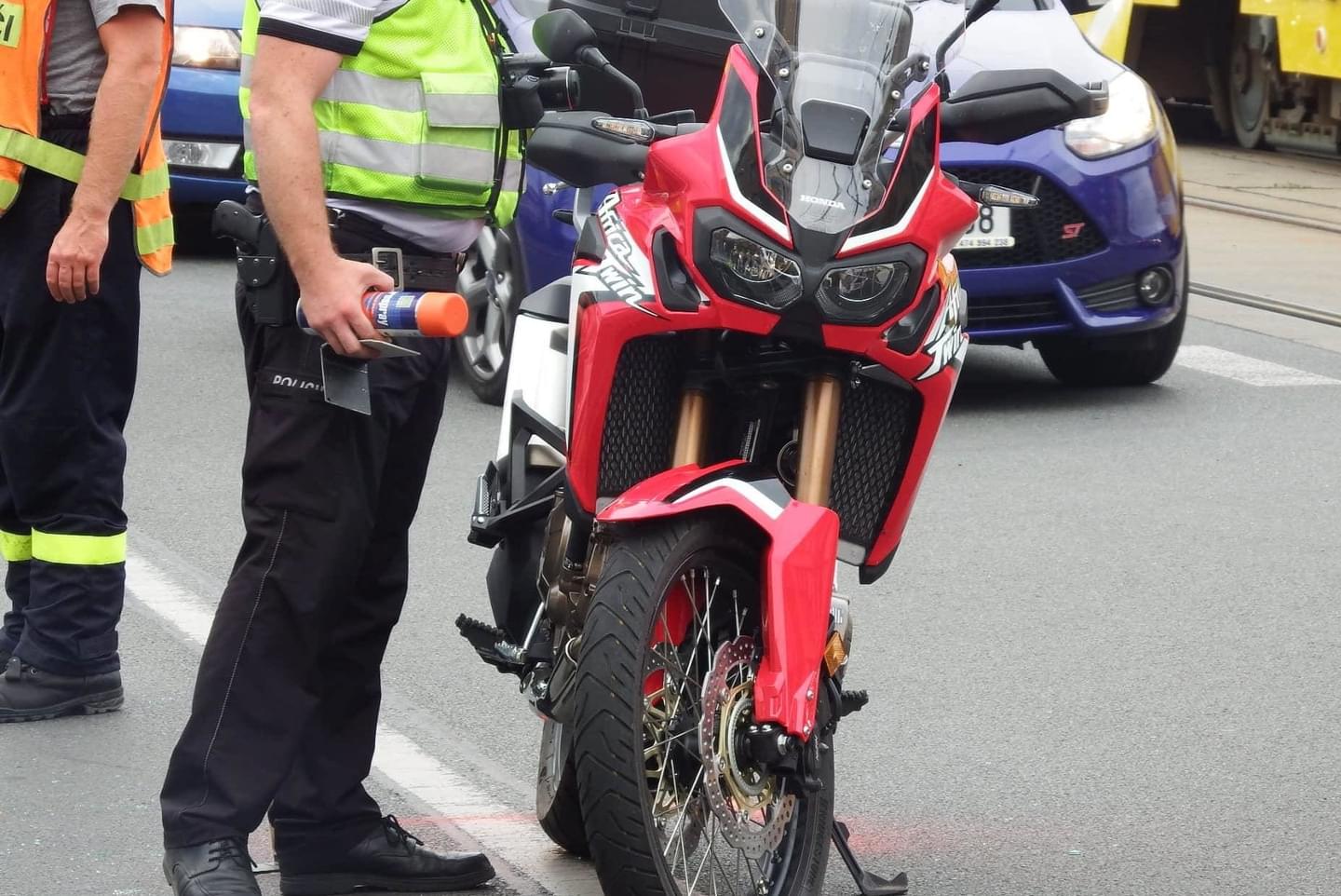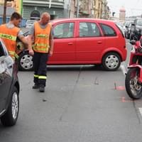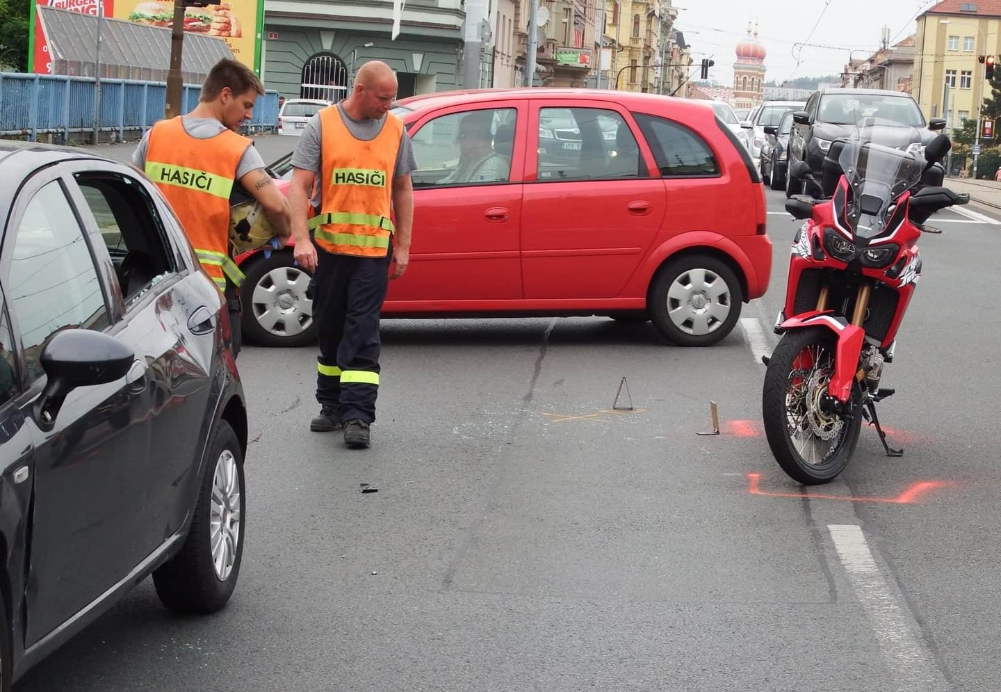 Nehoda motorky s osobním vozem blokuje dopravu v centru Plzně