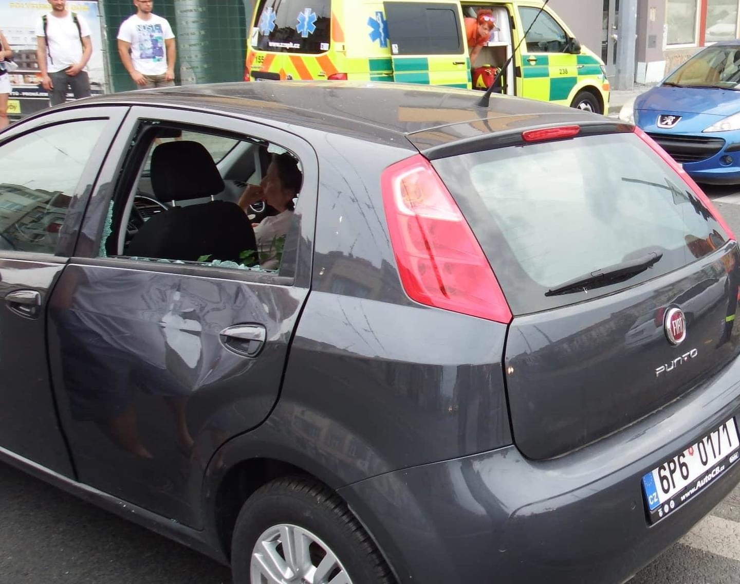 Řidička narazila do levé zadní části vozu a prorazila okýnko dveří.