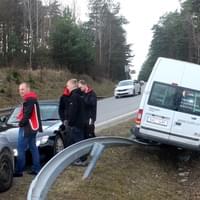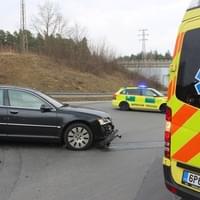 Na sjezdu z přivaděče 26 na Vejprnice došlo ve čtvrt na čtyři odpoledne ke střetu dodávky Ford Tranzit a osobního automobilu Audi. Náraz dodávku vymrštil na svodidla, na kterých zůstala viset nad příkopem.