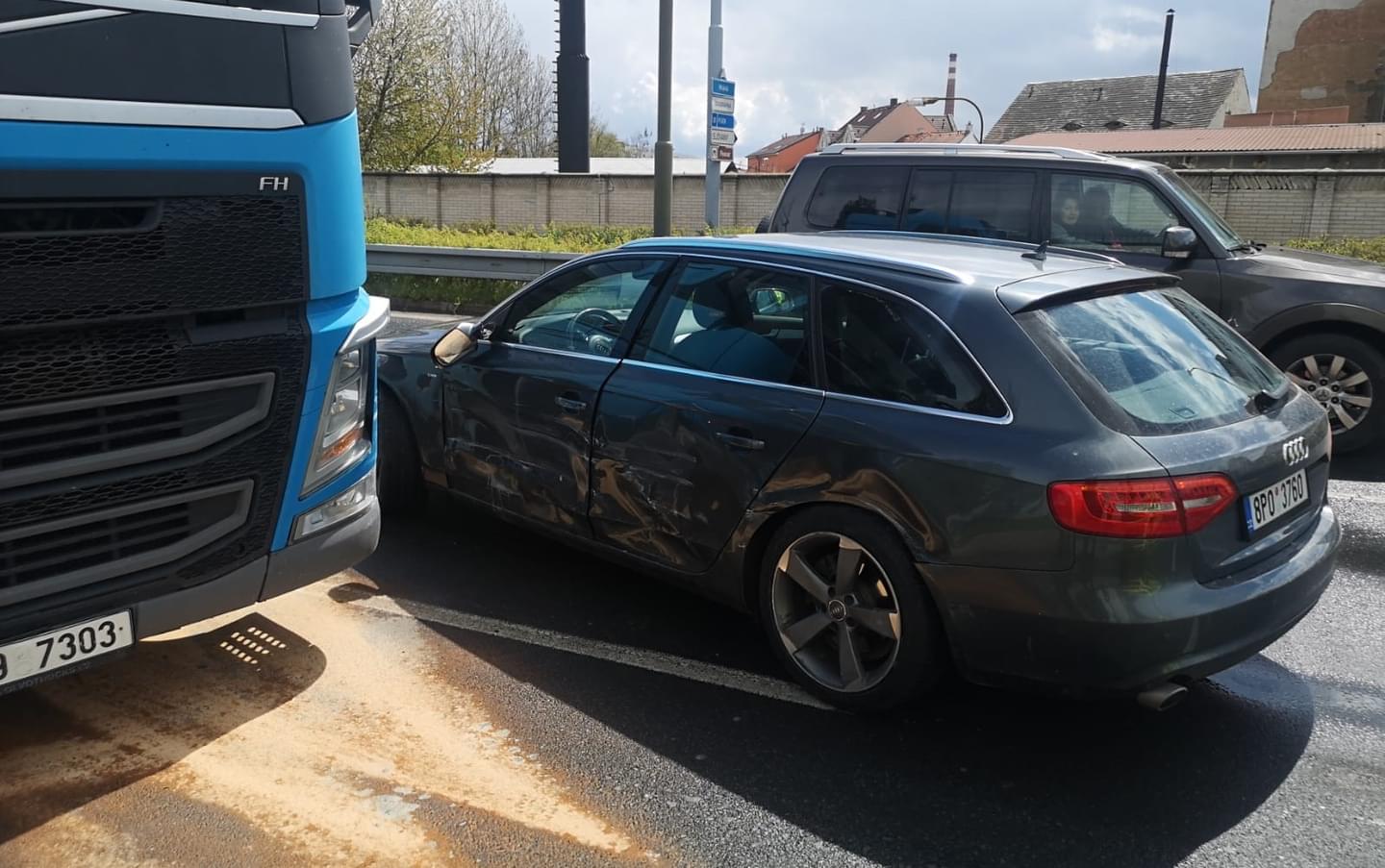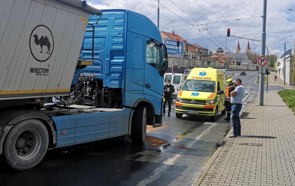 Dnes krátce po poledni došlo v Plzni na magistrále U Trati ke střetu nákladního vozu s osobním, vzhledem k tomu, že z místa bylo hlášeno zranění ženy, vyjely k nehodě všechny záchranné složky. Hasiči na místě provedli protipožární opatření a zajistili místo nehody. Záchranáři si převzali zraněnou spolujezdkyni z osobního vozu, ale dle všeho by žena měla být zraněna pouze lehce.