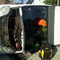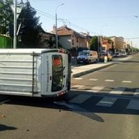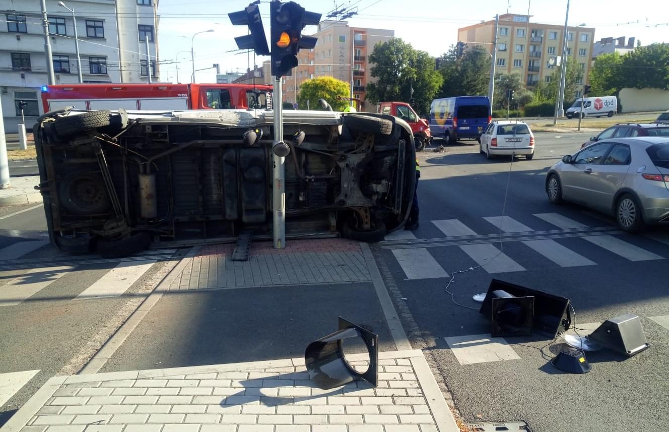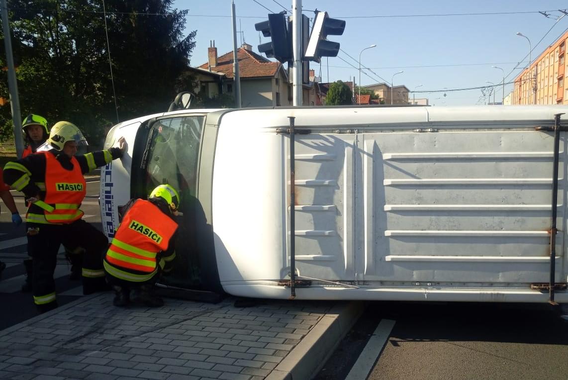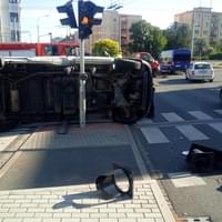 Jeden z řidičů do křižovatky vjel na červenou, došlo ke střetu obou vozidel, silný náraz do boku dodávku Opel převrátil a ta pak zůstala ležet na boku v Dlouhé ulici opřená o semafor, který poškodila.
