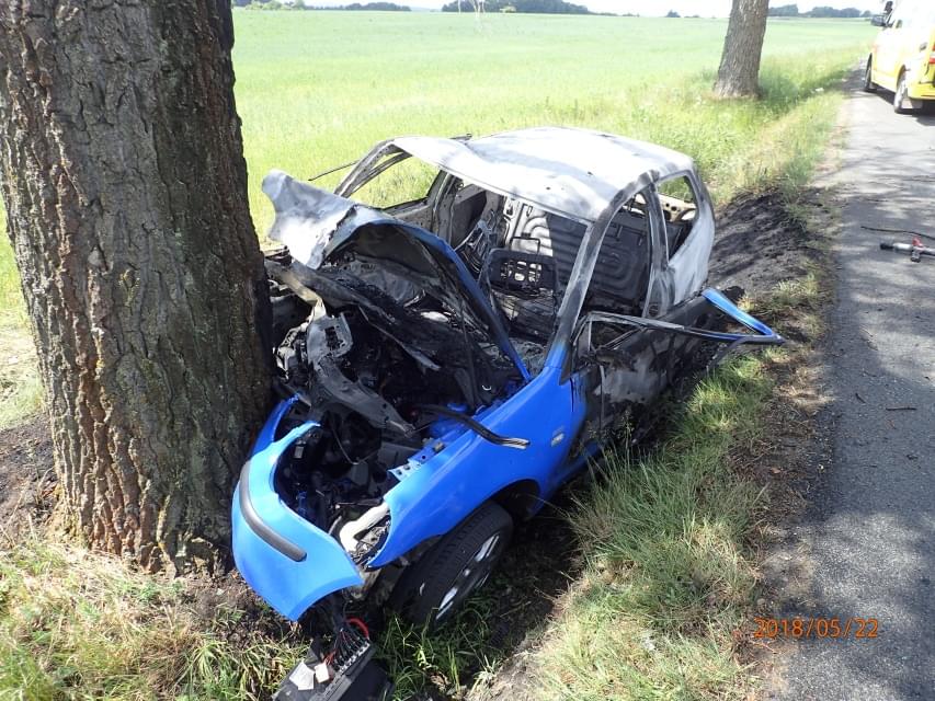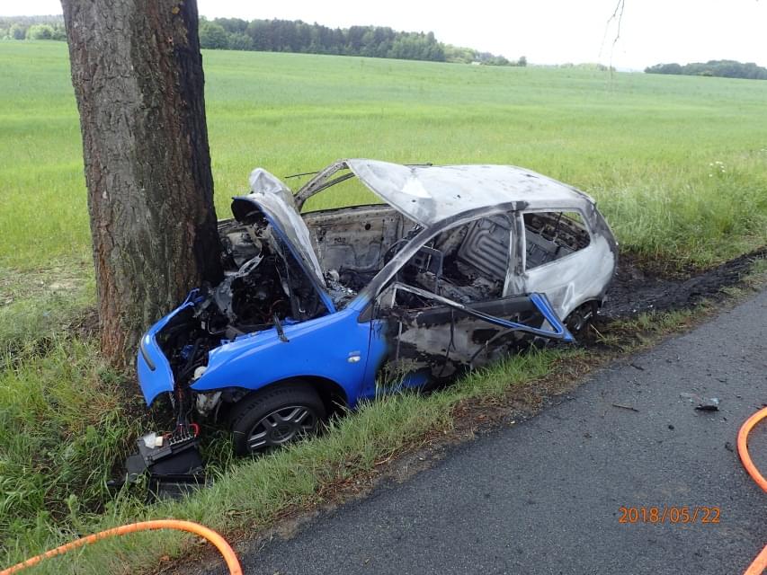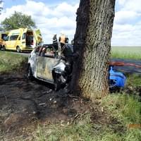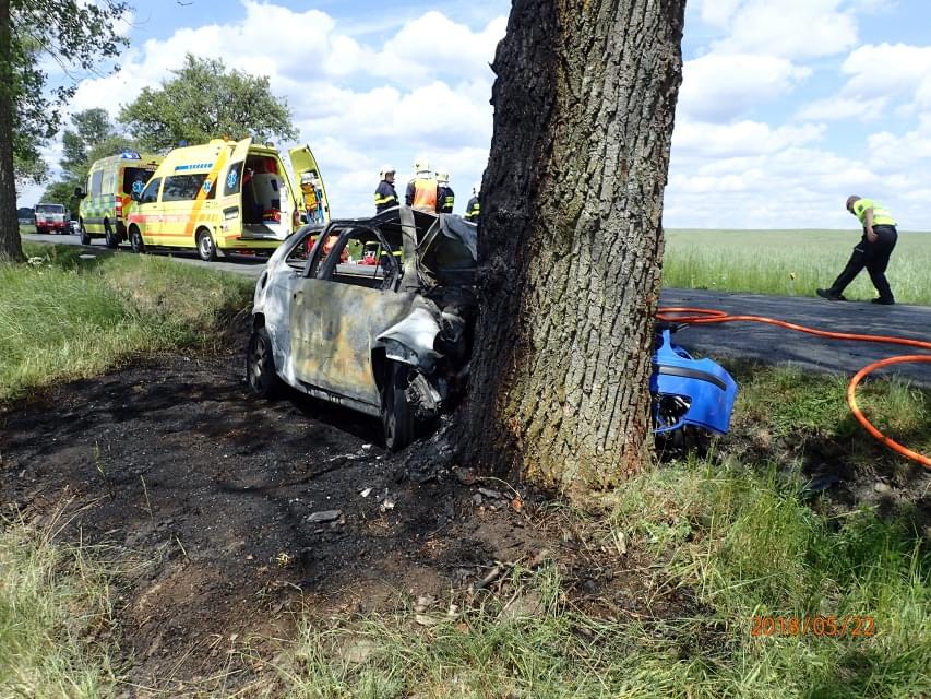 Dle prvotní zprávy z místa narazilo vozidlo do stromu a začalo hořet. Ve vozidle cestovaly tři osoby. Na místo okamžitě vyjely všechny záchranné složky a startoval vrtulník LZS.