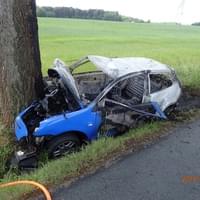 "Jednotka ze stanice Tachov právě zasahuje u požáru osobního vozidla se zraněním mezi Tachovem a Ctiboří. Automobil po nárazu do stromu začal hořet. Požár je momentálně již lokalizován a tři zraněné osoby jsou mimo vozidlo," uvedl mluvčí hasičů.