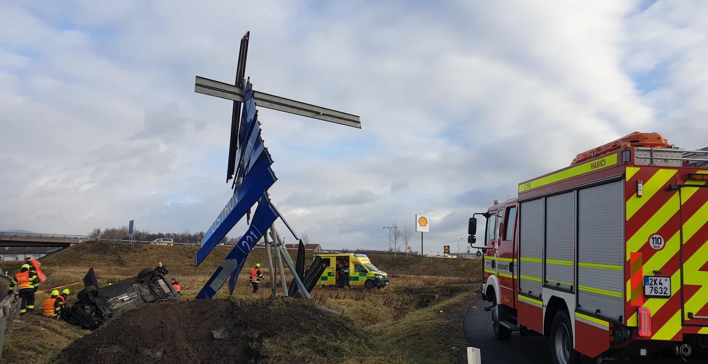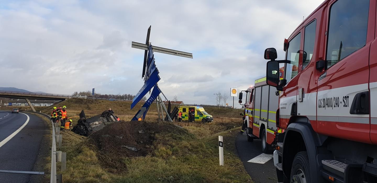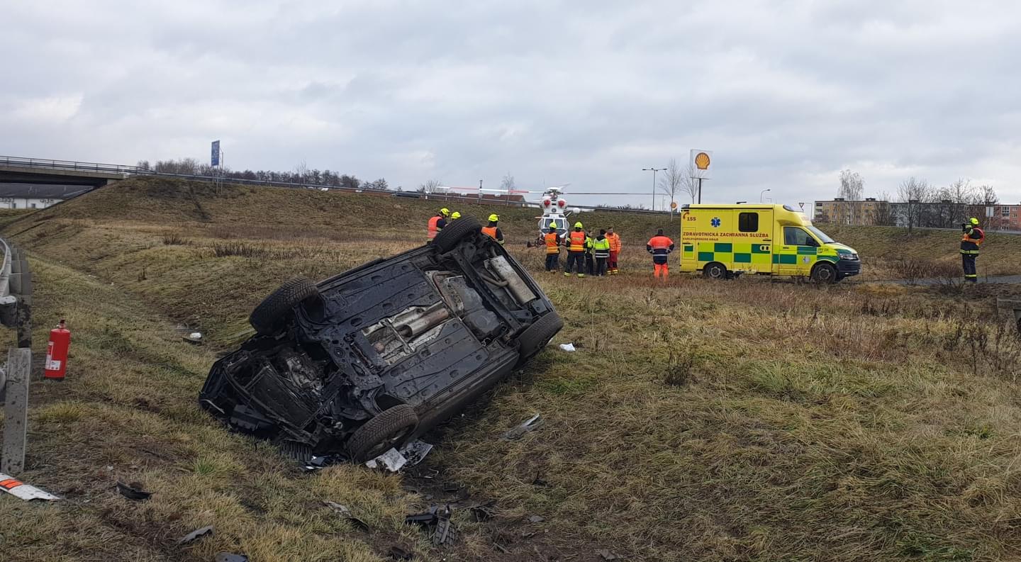 Z místa bylo hlášeno, že osobní vůz ve vysoké rychlosti vyletěl z vozovky, několikrát se převrátil a řidič zůstal ve vraku zaklíněný. Na místo proto vyjížděly nejen všechny pozemní záchranné složky, ale z letiště v Líních vzlétl i vrtulník letecké záchranné služby.