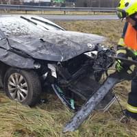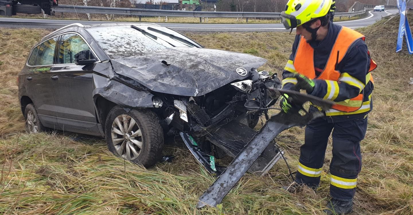 Podle policie k nehodě došlo tak, že padesátiletý řidič vozu Škoda Karoq nepřizpůsobil rychlost, při projetí zatáčky vyletěl z vozovky, smetl informační dopravní tabuli, narazil do svodidel a nakonec se s vozidlem převrátil.