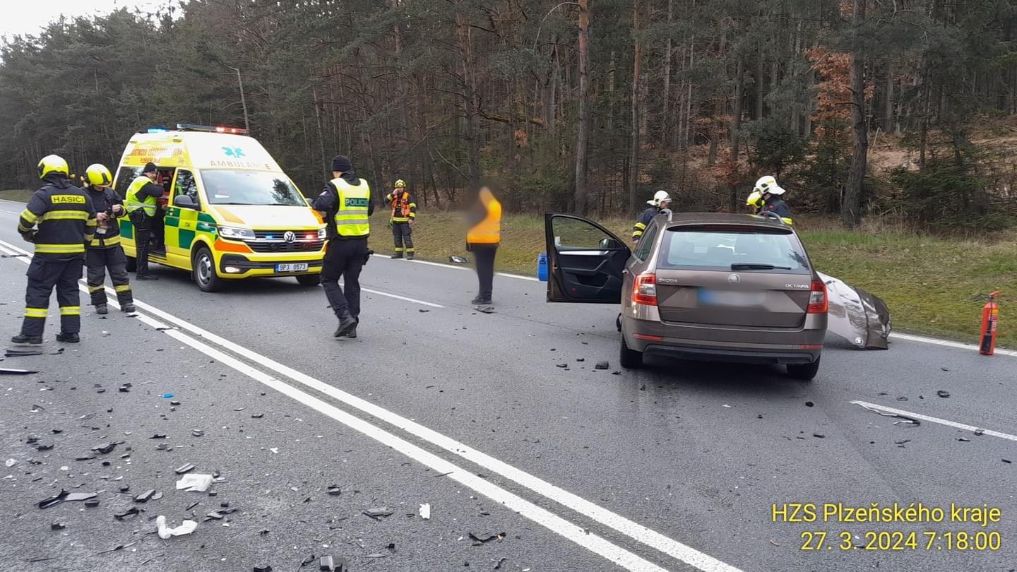 "Podle dosud zjištěných informací jel řidič narozený v roce 1957 s vozidlem Škoda Octavia ve směru jízdy od Holýšova na Stod. V místě, kde jsou pro každý směr jízdy dva jízdní pruhy, se s vozidlem otáčel a došlo ke střetu s vozidlem Ford jedoucím stejným směrem.