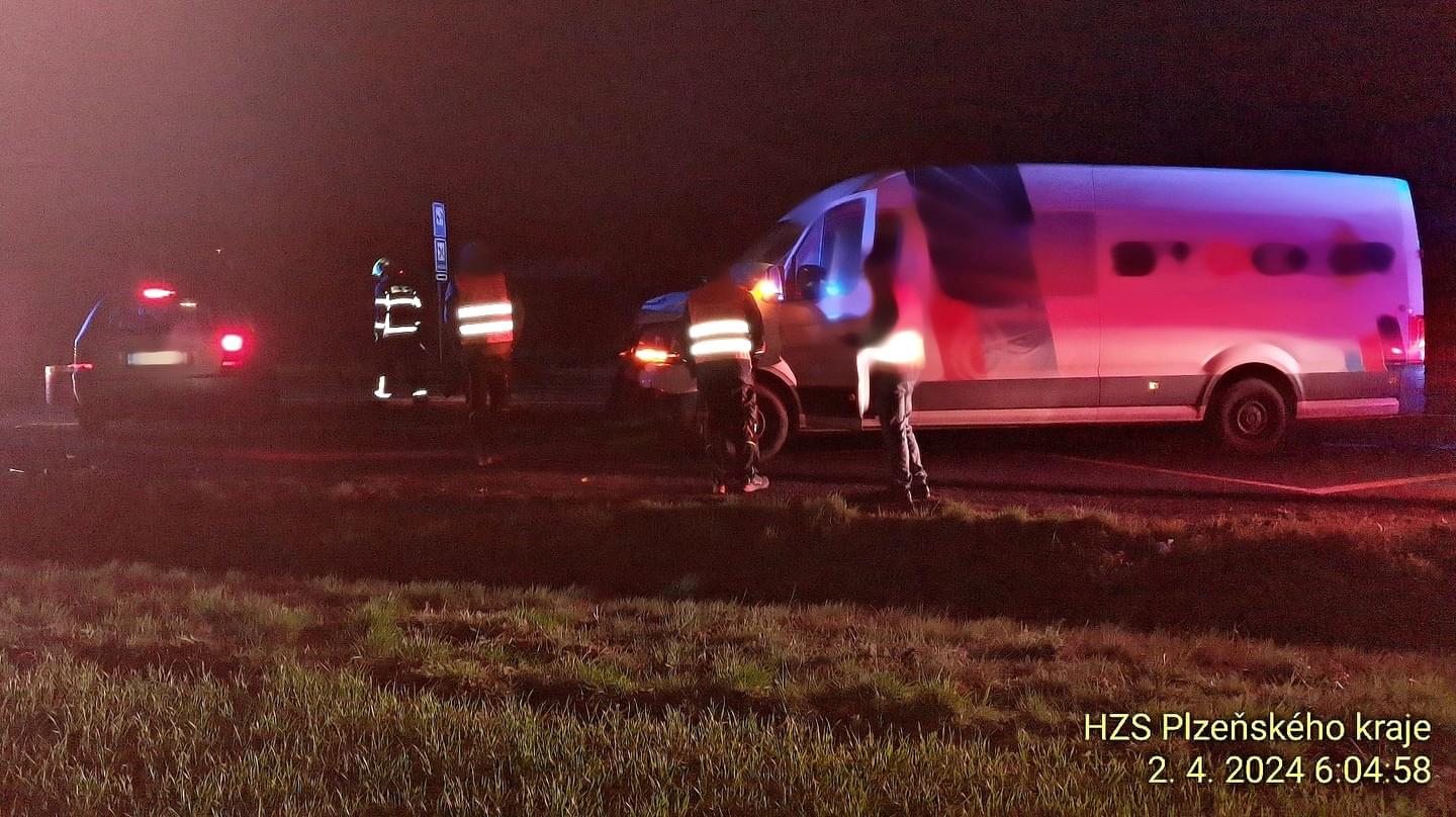 Dnes ráno v šest hodin došlo na silnici I/26 u Újezdu na Domažlicku k dopravní nehodě, během které se střetla dodávka a osobní automobil.
