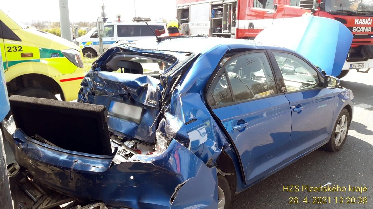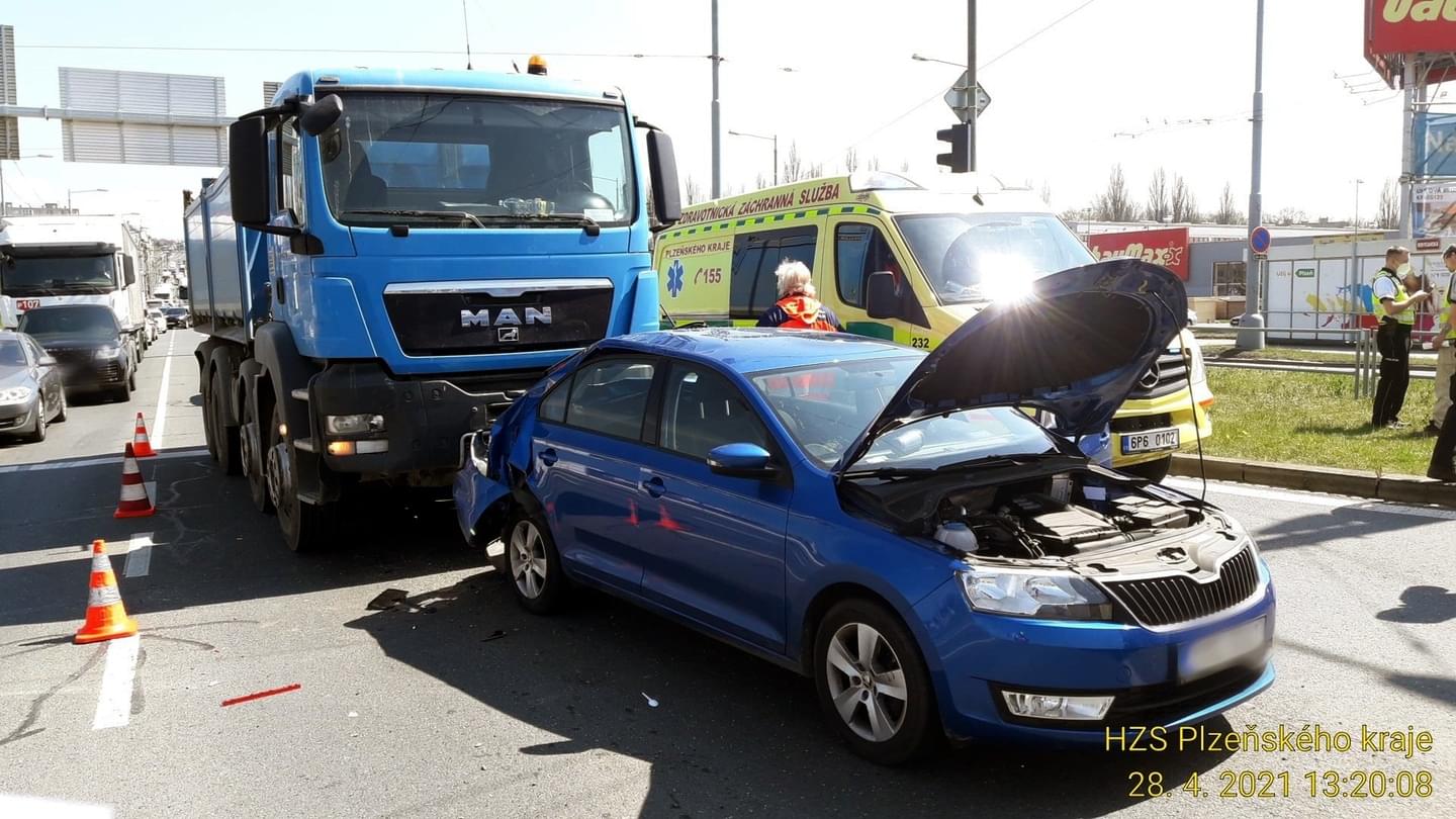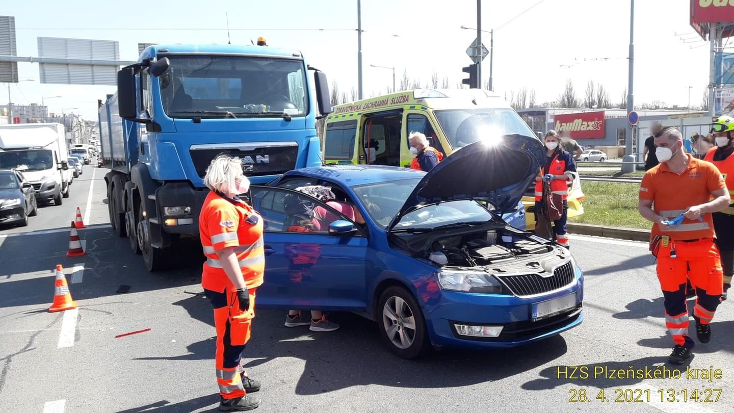Dnes odpoledne kolem jedné hodiny došlo na Rokycanské třídě v Plzni, u křižovatky s Jateční, ke střetu nákladního vozu MAN a Škody Rapid, při kterém náraz zcela zdemoloval zadní část osobního vozu. Vzhledem k tomu, že při nehodě došlo ke zranění řidičky osobního vozu, na místo vyrazily všechny složky IZS. Záchranáři převzali zraněnou ženu a transportovali ji do Fakultní nemocnice Lochotín. Hasiči zajistili místo události a provedli protipožární opatření.