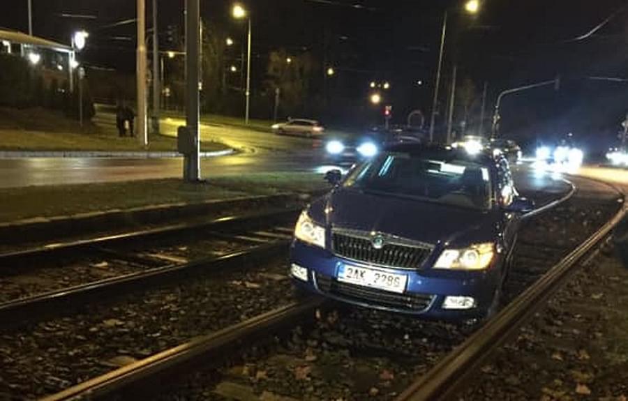 Kolem šesté hodiny večer došlo k další dopravní nehodě na Plaské třídě v Plzni, kde nedaleko konečné tramvajové linky číslo 1 vjel do kolejiště osobní vůz Škoda.