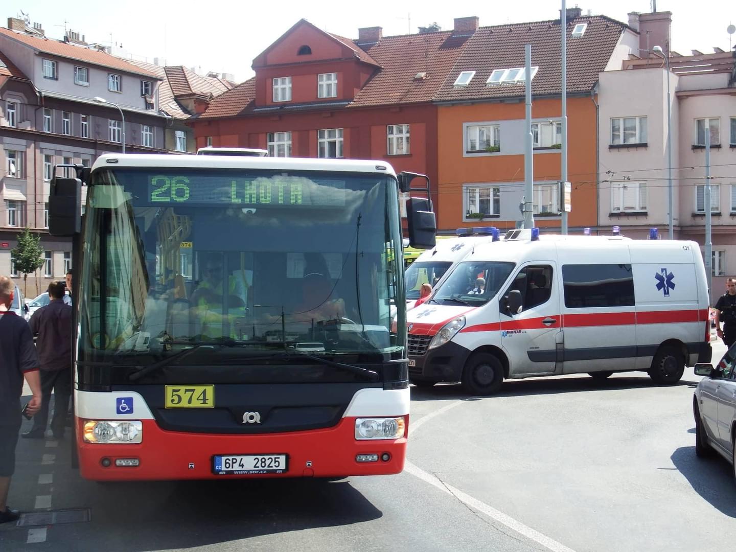 Podle informací již z místa zde došlo k tomu, že řidič autobusu linky 26 jedoucí ve směru na Lhotu musel prudce zabrzdit, aby se vyhnul střetu s osobním vozem Škoda Fabia, řízeným ženou narozenou v roce 1999, které vyjíždělo z prostoru bývalých kasarén a odbočovalo vlevo směrem na Borská pole. Následkem prudkého brzdění v autobusu popadalo mnoho osob. Řidič autobus zastavil v Kaplířově ulici a na místo vyrazili záchranáři, hasiči i policisté.