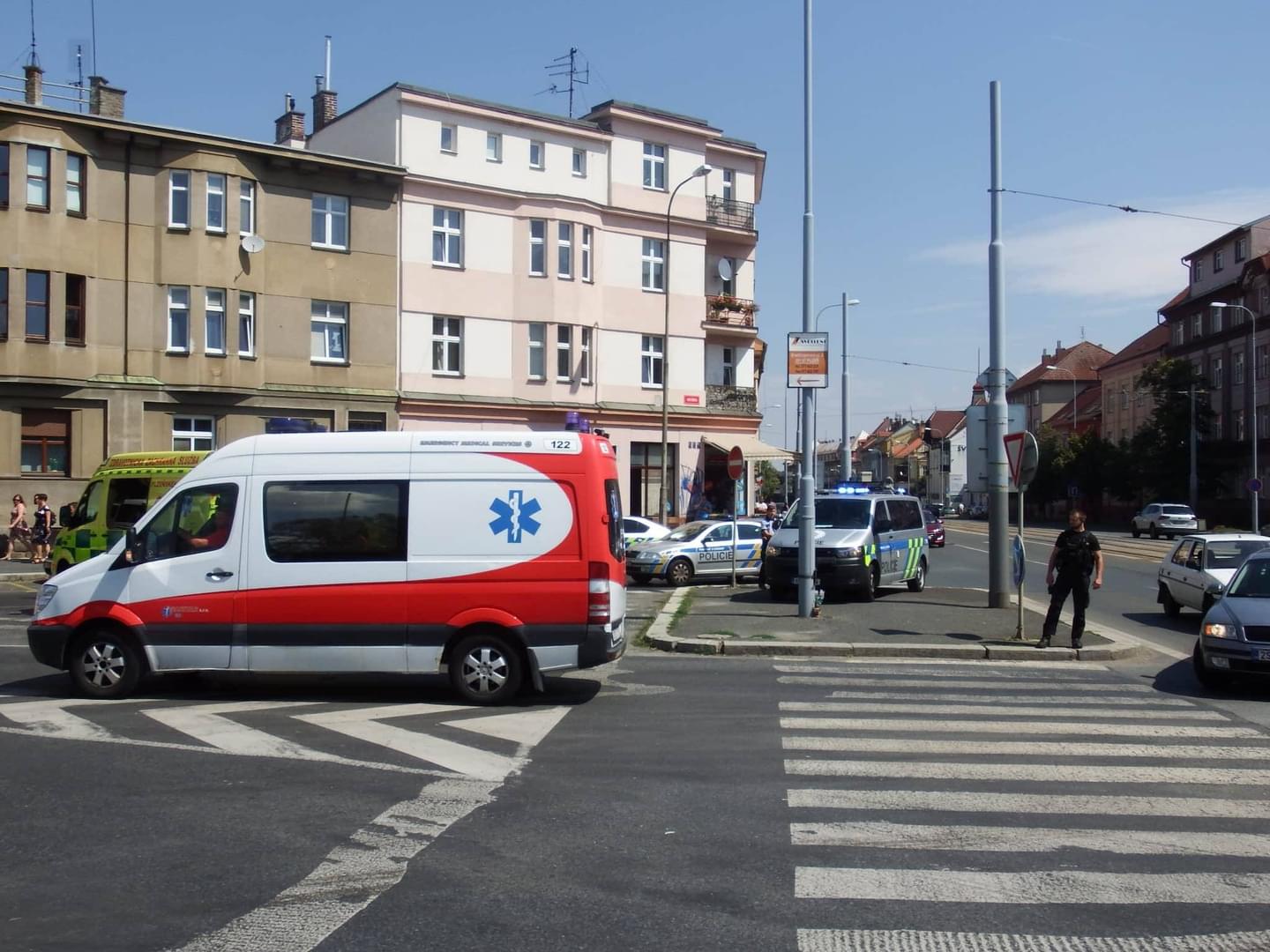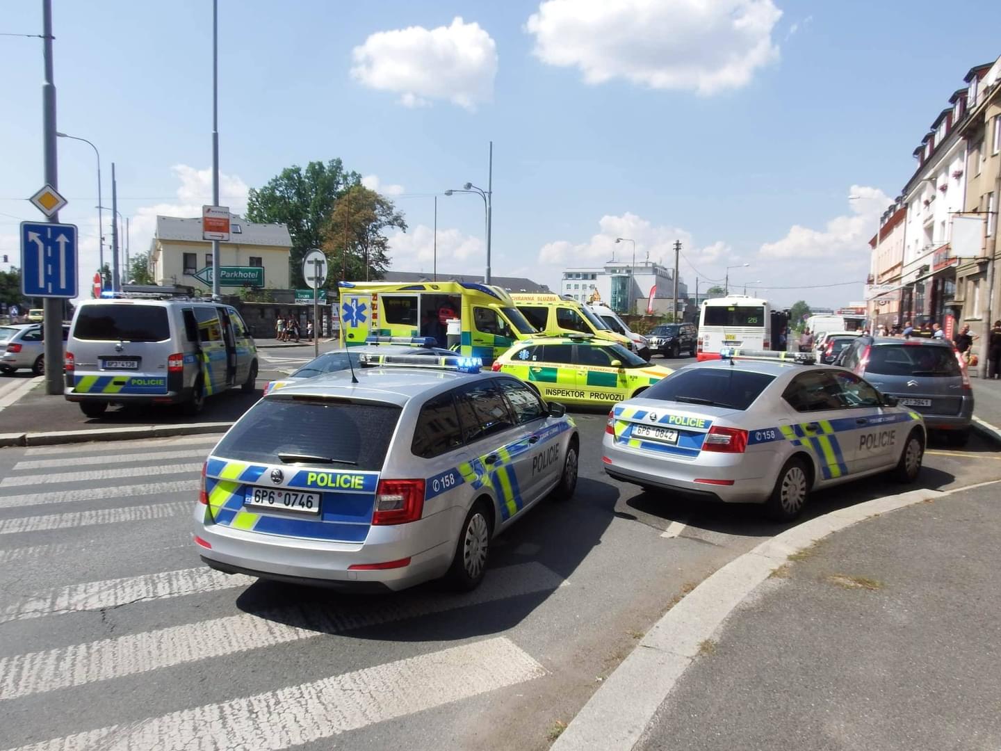 Zasahuje zde několik vozů ZZS a na pomoc vyjely i převozové sanitní vozy a samozřejmě nechybí ani vůz RV s lékařem a inspektor provozu ZZS Pk.