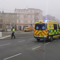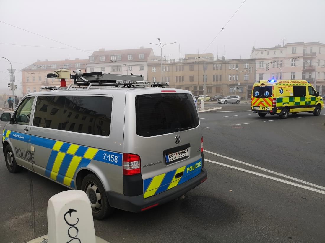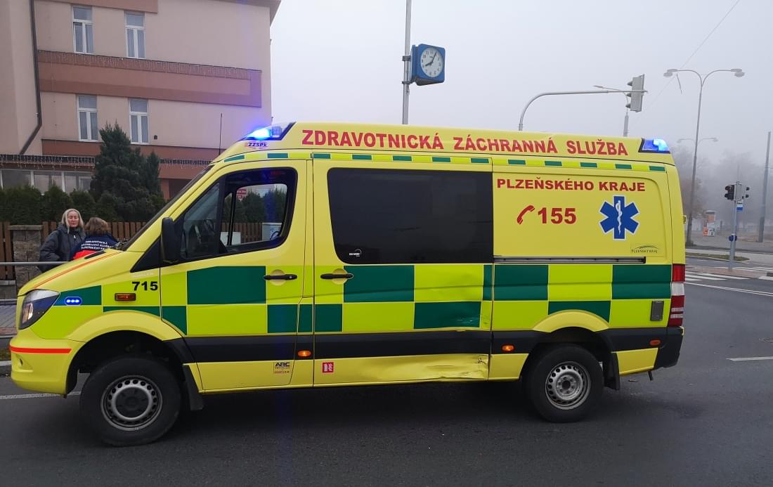 V Plzni na Borech se střetl vůz zdravotní záchranné služby s dodávkou