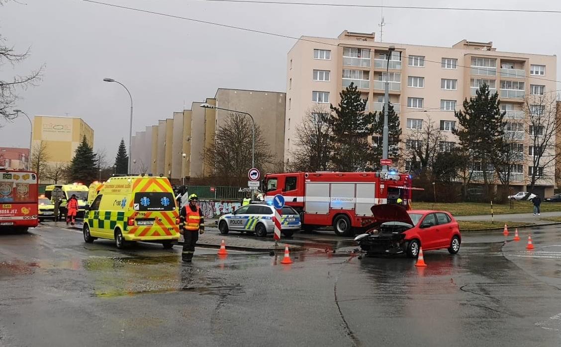 Nehoda blokuje výjezd z Plzně na Vejprnice, hasiči provoz řídí kyvadlově.