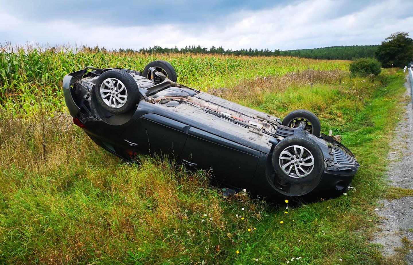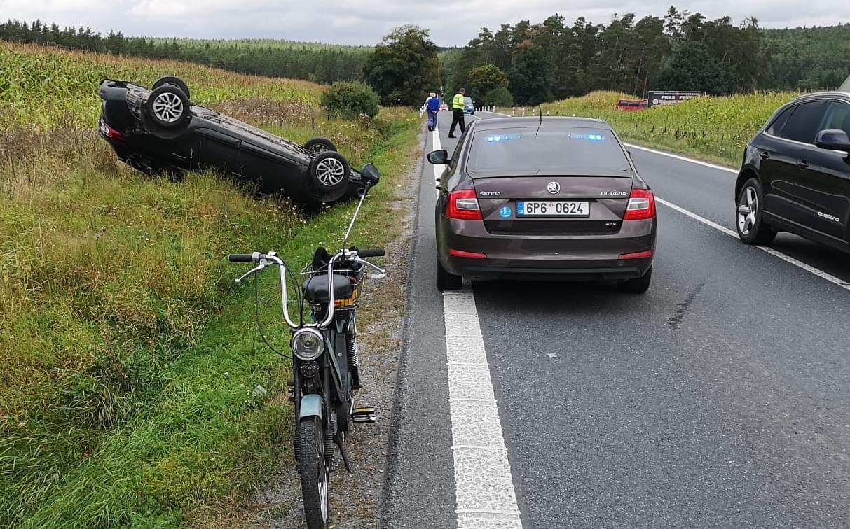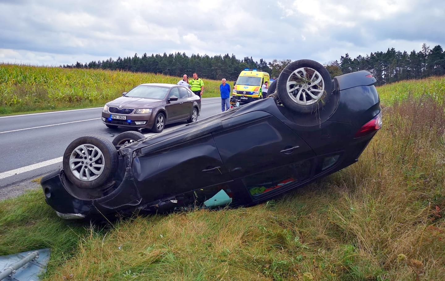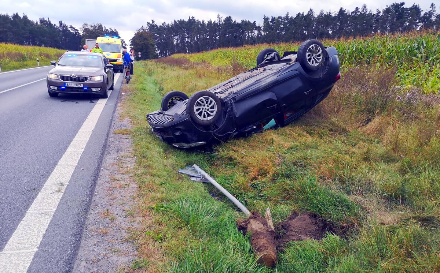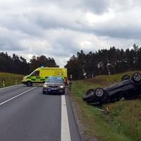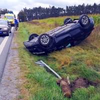 Dnes před druhou hodinou odpoledne došlo u Třemošné k dopravní nehodě, během které vyletělo z vozovky vozidlo Renault Megane, vyvrátilo dopravní značku a zůstalo ležet na střeše. Vzhledem k tomu, že z místa bylo hlášeno zranění několika osob, vyjely k nehodě všechny záchranné složky.