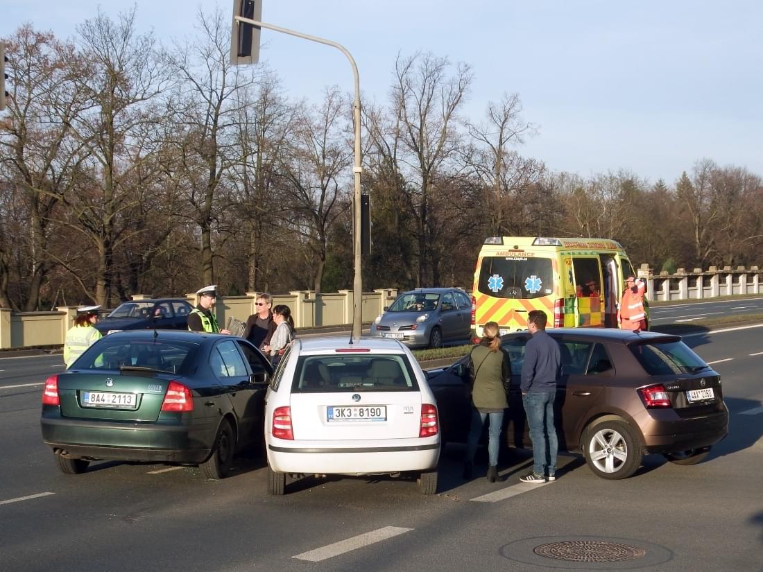 Dopravu na Rokycanské komplikuje dopravní nehoda tří vozů Škoda, ke které došlo před pátou hodinou odpoledne v Plzni na křižovatce u Tesca, ve směru od centra. Na místě to vypadá, jako kdyby se tři Škodovky seběhly ke krmítku. Nehoda komplikuje výjezd od obchodního centra a i ve směru na Prahu se tvoří kolony.