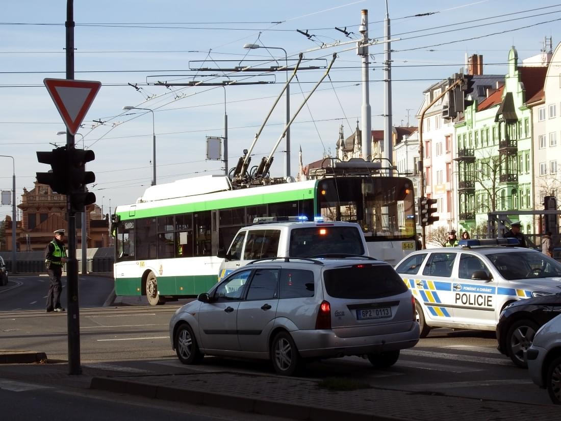 Dnes před jednou hodinou odpoledne došlo na křižovatce Klatovské třídy a ulic U Trati x Borská ke střetu trolejbusu s vozem Škoda. Podle našich informací jel řidič Škody ve směru z ulice Borská, odbočoval vlevo na Klatovskou, oba vozy jely na zelenou, ale osobní vůz nedal přednost trolejbusu linky 10 jedoucímu z ulice U Trati.