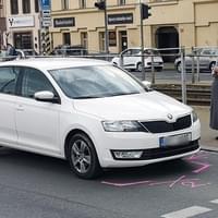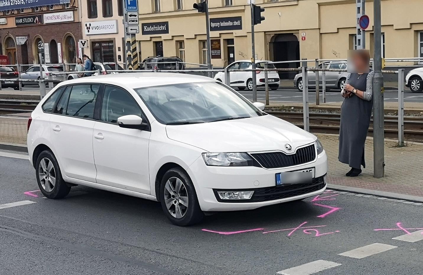Podle svědků k nehodě mělo dojít tak, že řidička středního věku, která jela s vozidlem Škoda Rapid ve směru od centra na Skvrňany uvízla před OC Plaza v koloně způsobené prací na silnici, v prostoru mezi dvěma přechody od Plazy na tramvajovou zastávku, tedy až za semaforem.