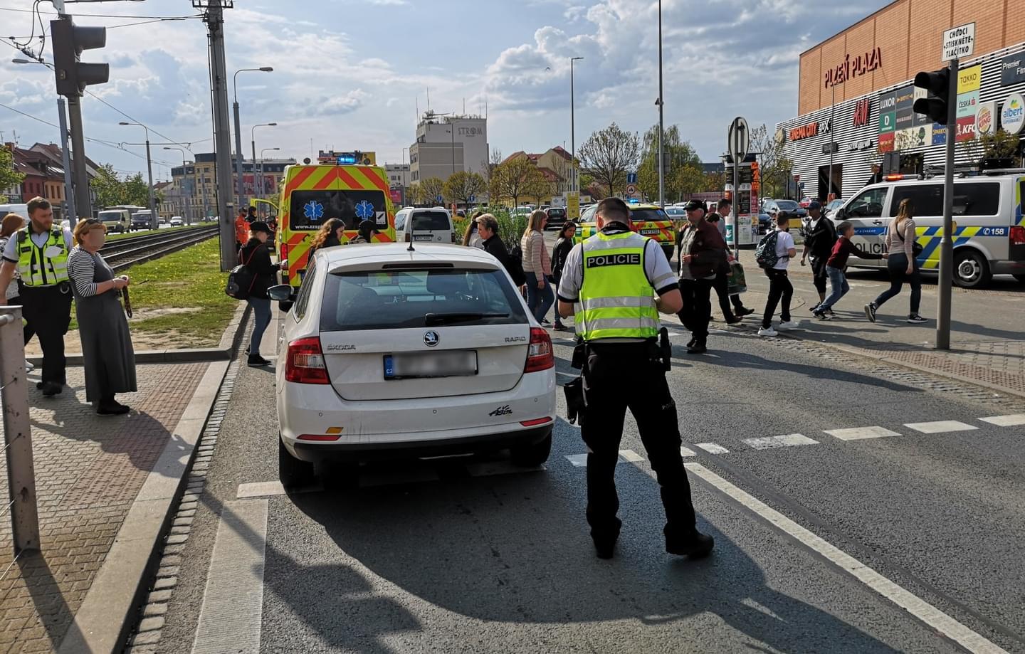 Dnes po půl páté odpoledne došlo před obchodním centrem Plaza na přechodu, respektive v místě určeném pro přecházení na tramvajovou zastávku, k dopravní nehodě, při které osobní vůz Škoda srazil dvě děti.