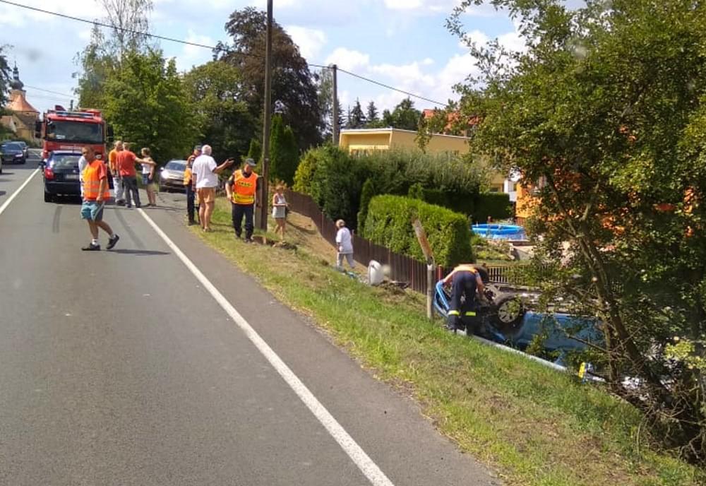 Auto skončilo převrácené a v zahradě