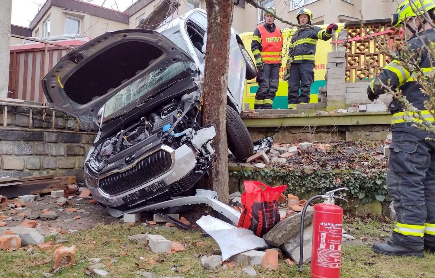 K vážné dopravní nehodě došlo dnes dopoledne v Karlových Varech v městské části Bohatice. Osobní vůz Škoda zde po proražení zděného plotu skončil na zahradě rodinného domu, kde ještě narazil do stromu.