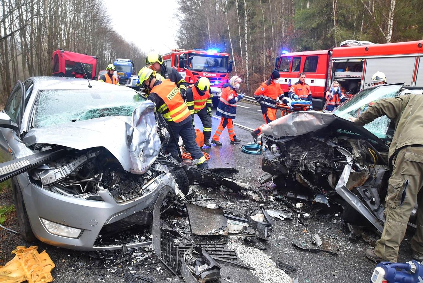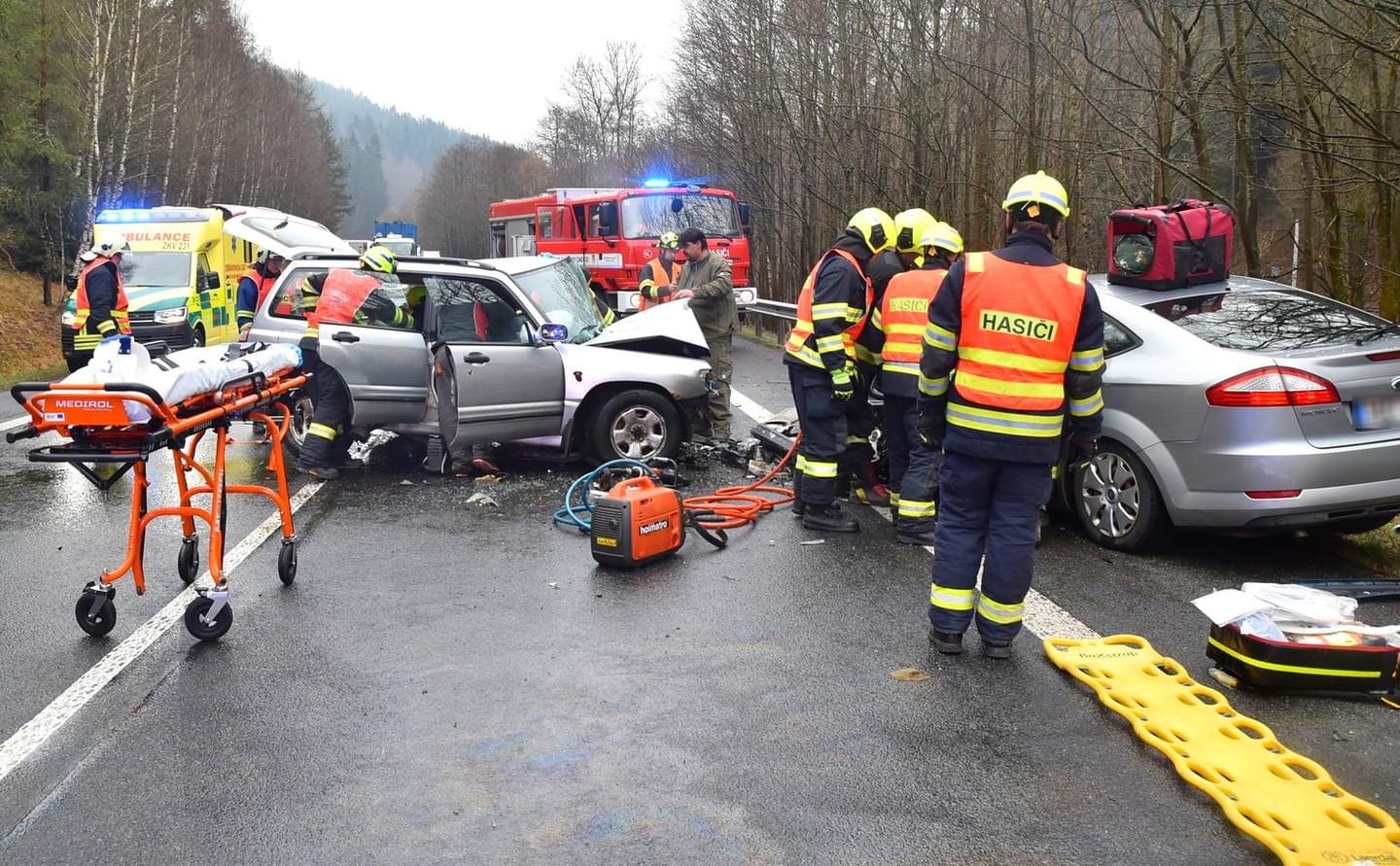 Z místa bylo nahlášeno zranění čtyř osob a zaklínění obou řidičů, takže k nehodě vyjely všechny záchranné složky a vzlétl i vrtulník LZS. Letecká záchranná služba ale kvůli počasí na místo bohužel nedoletěla a vrtulník se musel vrátit na základnu.