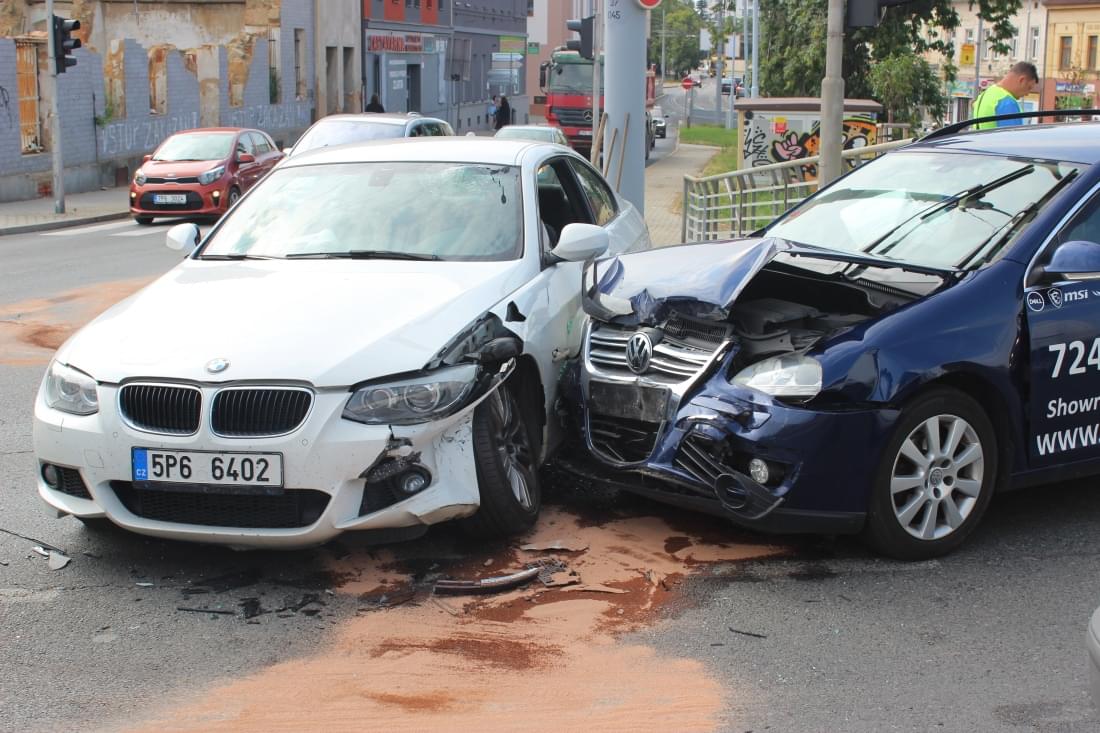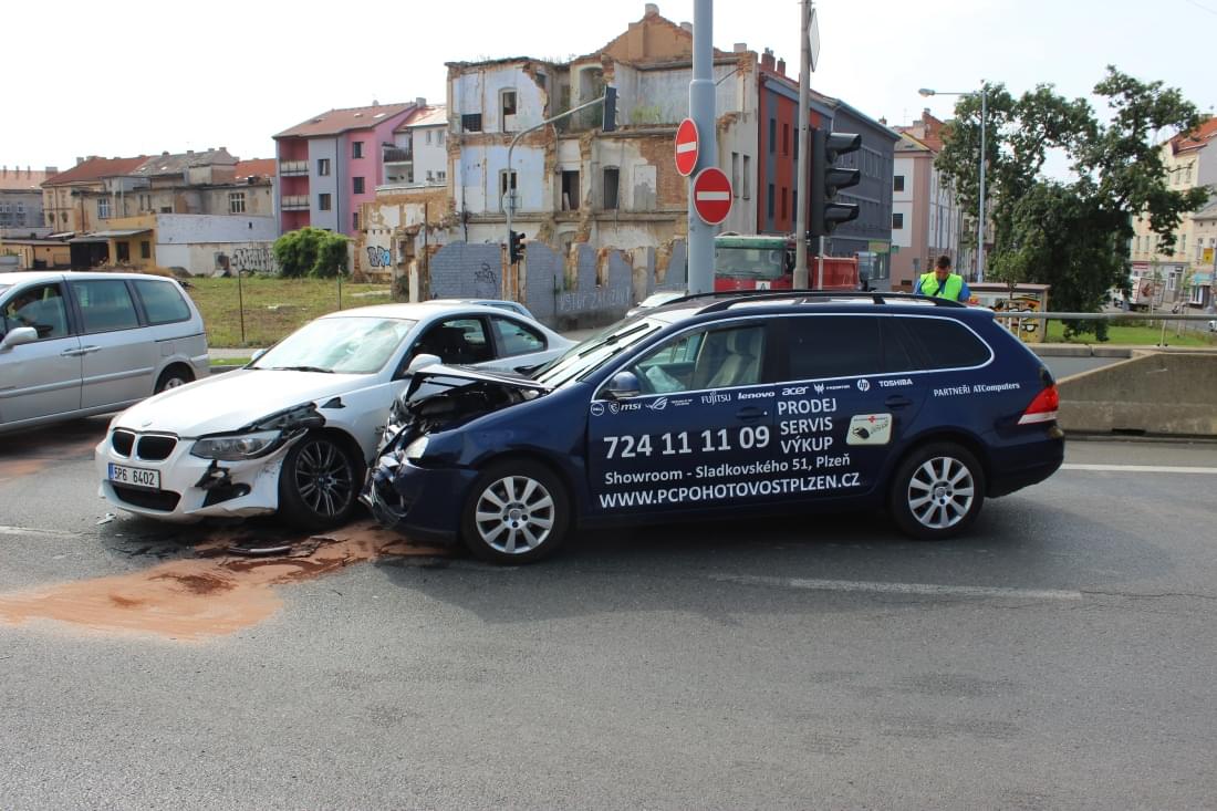 "Řidič narozený v roce 1977 s vozem VW Golf jel od ulice Doudlevecká k ulici Koterovská a na křižovatce Mikulášská x U Trati projel na červenou z důvodu nevěnování se řízení. Druhý vůz tovární značky BMW řídil muž narozený v roce 1956, který jel z Mikulášské a chtěl odbočit doleva k Doudlevecké," popsala tisková mluvčí policie.