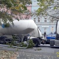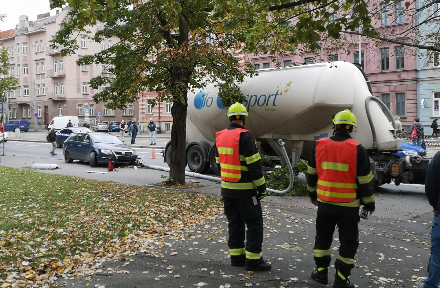 Podle informací z místa došlo k nehodě tak, že nákladní vůz značky Volvo jel levém pruhu a jeho řidič při přejíždění do pravého pruhu dle všeho přehlédl souběžně jedoucí vůz značky Volkswagen a vytlačil ho v pravo na chodník, kde se osobní vůz střetl s lampou.