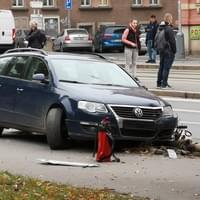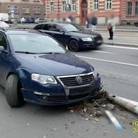 Sražený kovový sloup spadl na chodník pouhý kousek od procházející starší ženy, kterou sice naštěstí nezasáhl, žena se ale tak lekla, že při snaze uskočit upadla a utrpěla zranění nohy.
