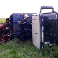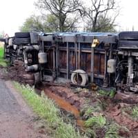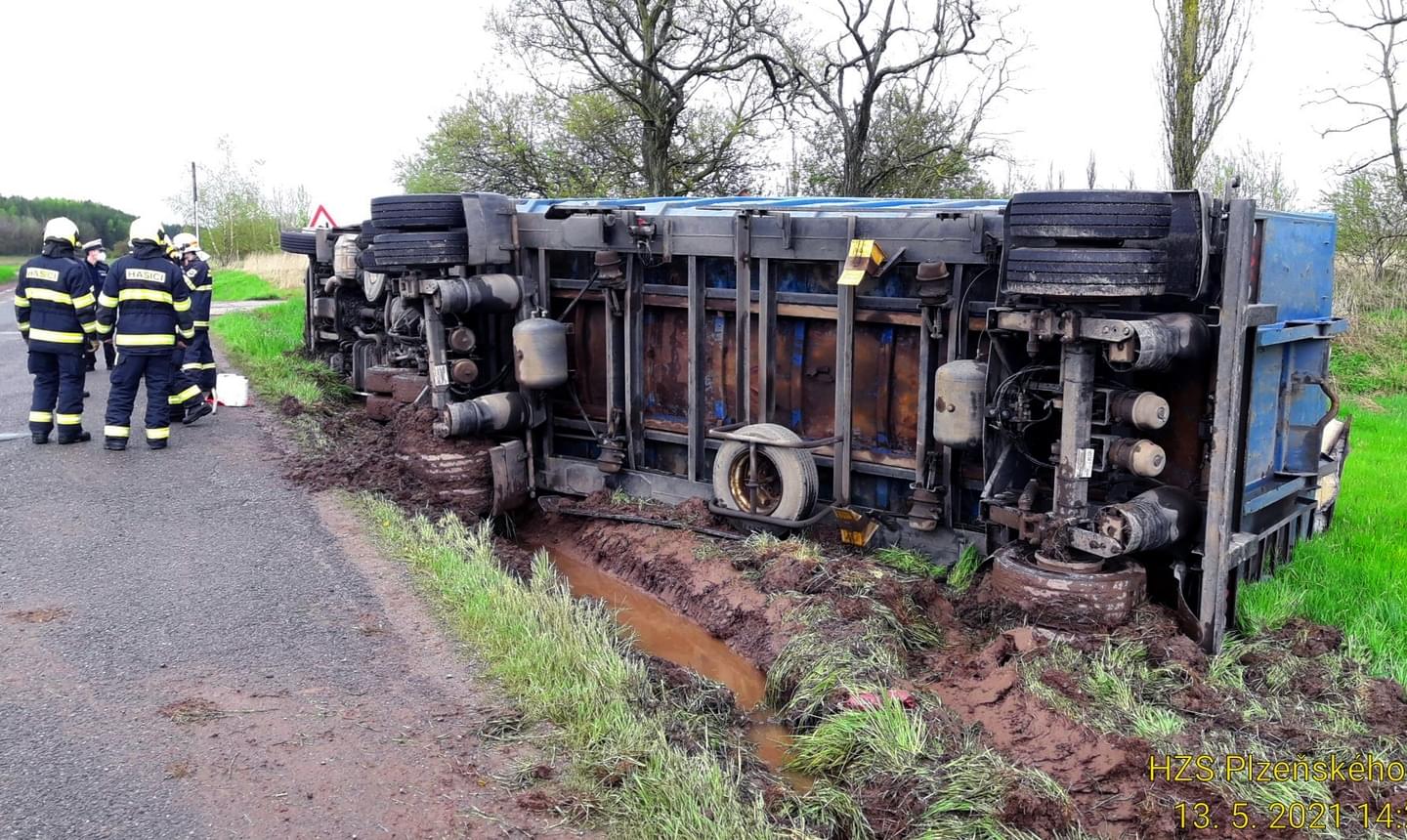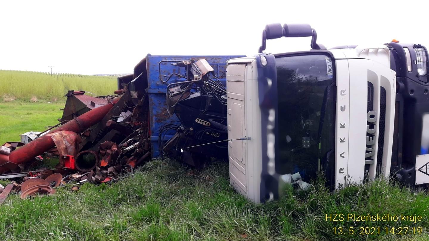 Pohvizdy k převrácení kamionu s železným materiálem do silničního